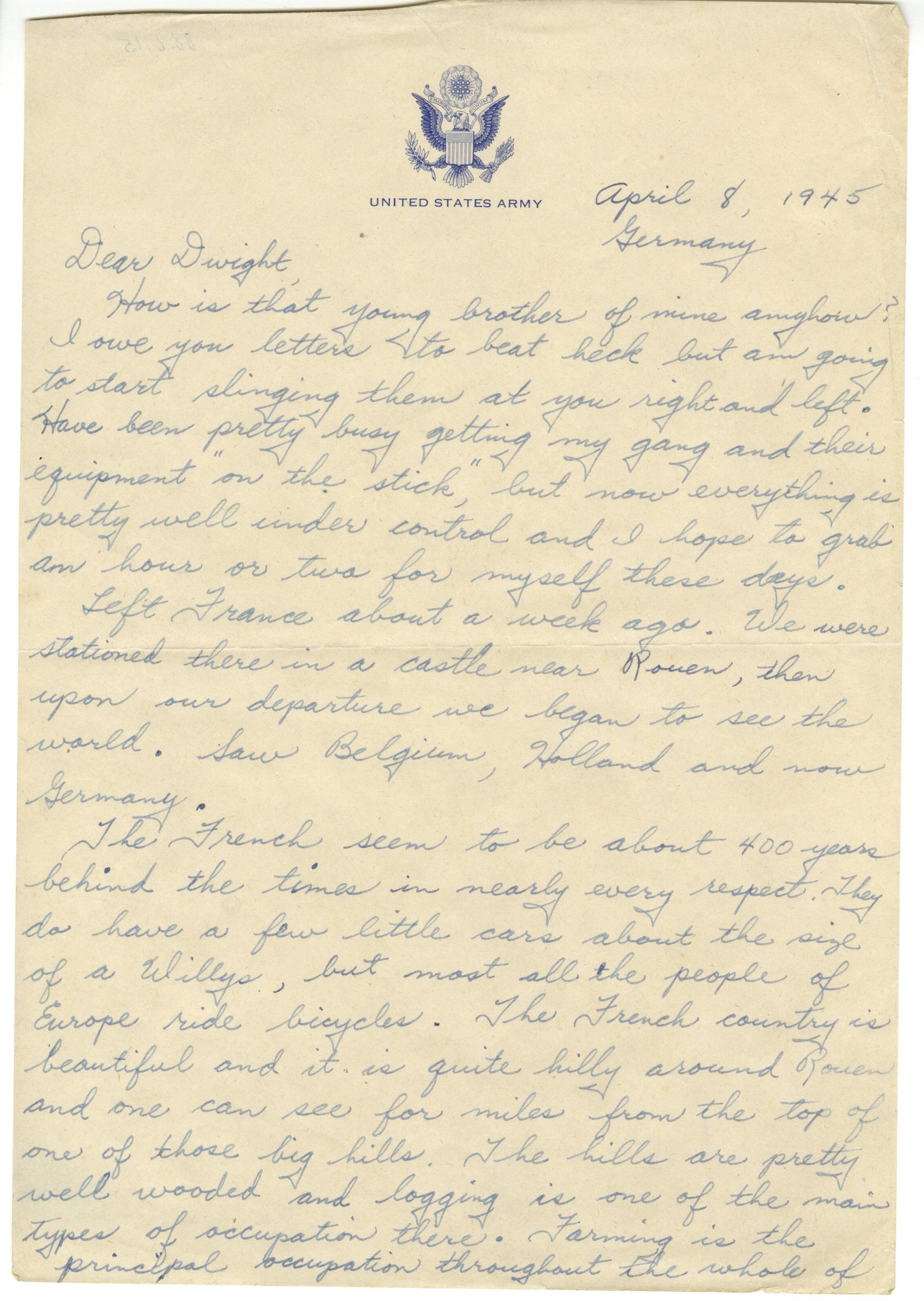A 3 page leter dated April 8, 1945