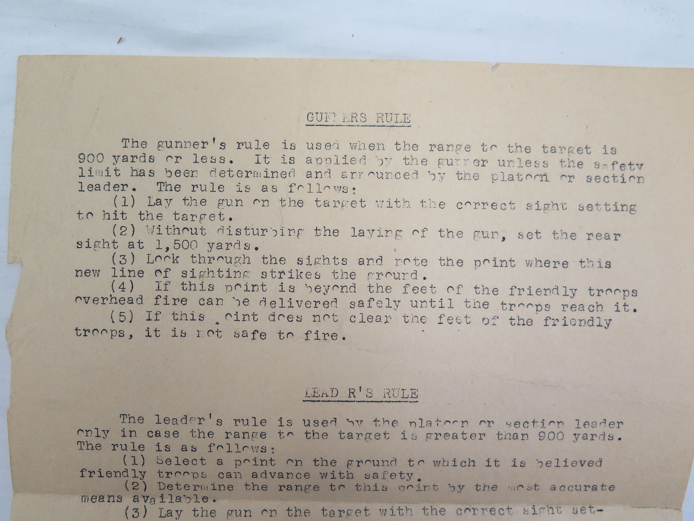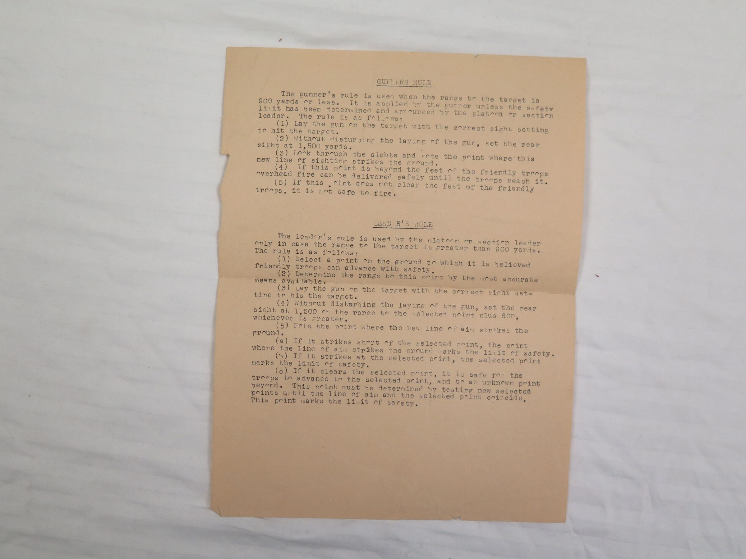 This is a type-written document of military rules printed for Leader's and Gunner's. The Gunner's rules are on top. The document measures 8" (w) x 10.5" (l).