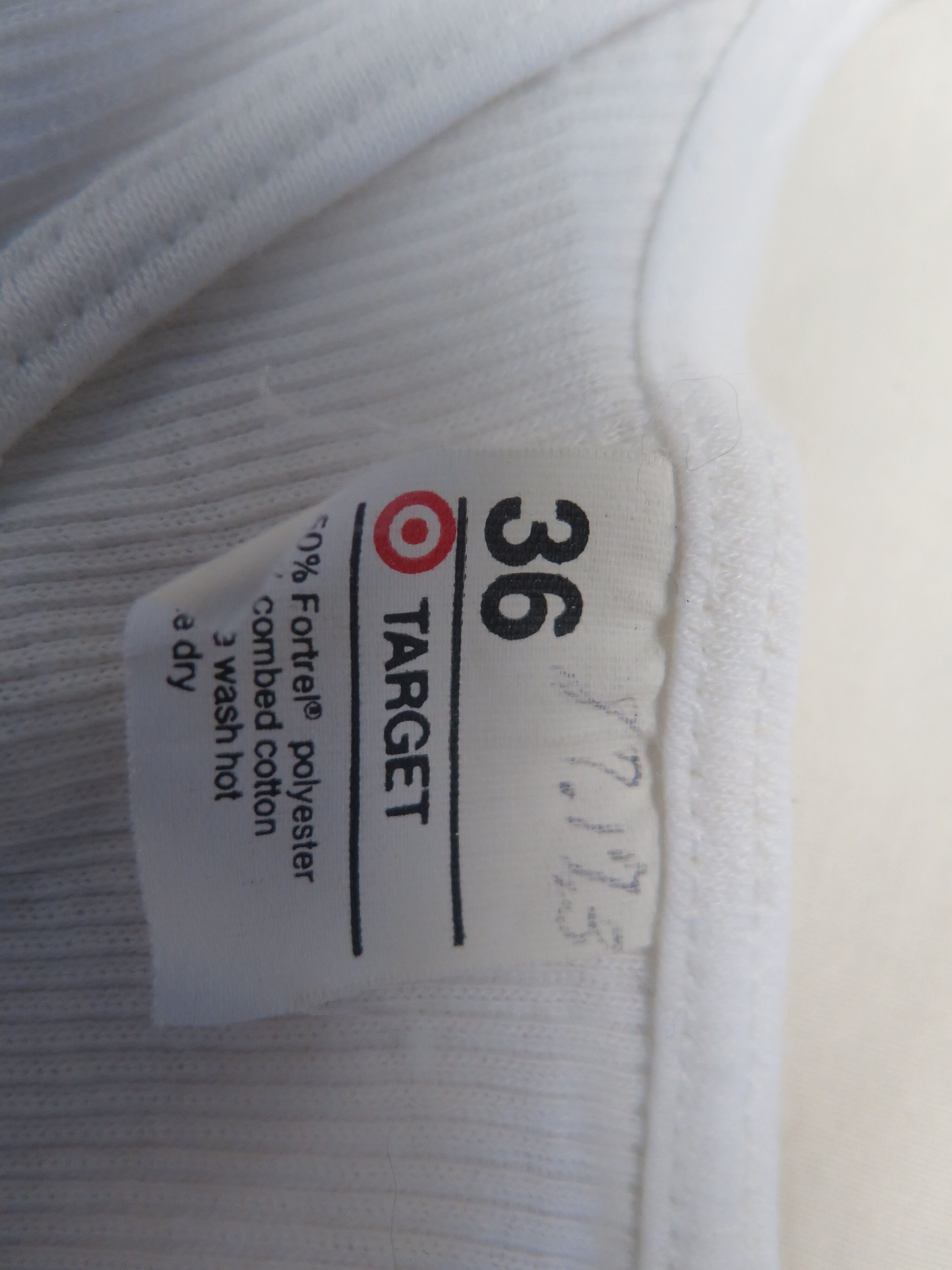 Sleeveless white men's undershirt, "wife beater" style, size 36. Was found in the station agents office on a mannequin (1987.17.1) under the longsleeve brown wool shirt he was wearing. No accession information has been located. -Alowrie 7/18/2015. Shirt measures 8.5" (w) x 27" (l).