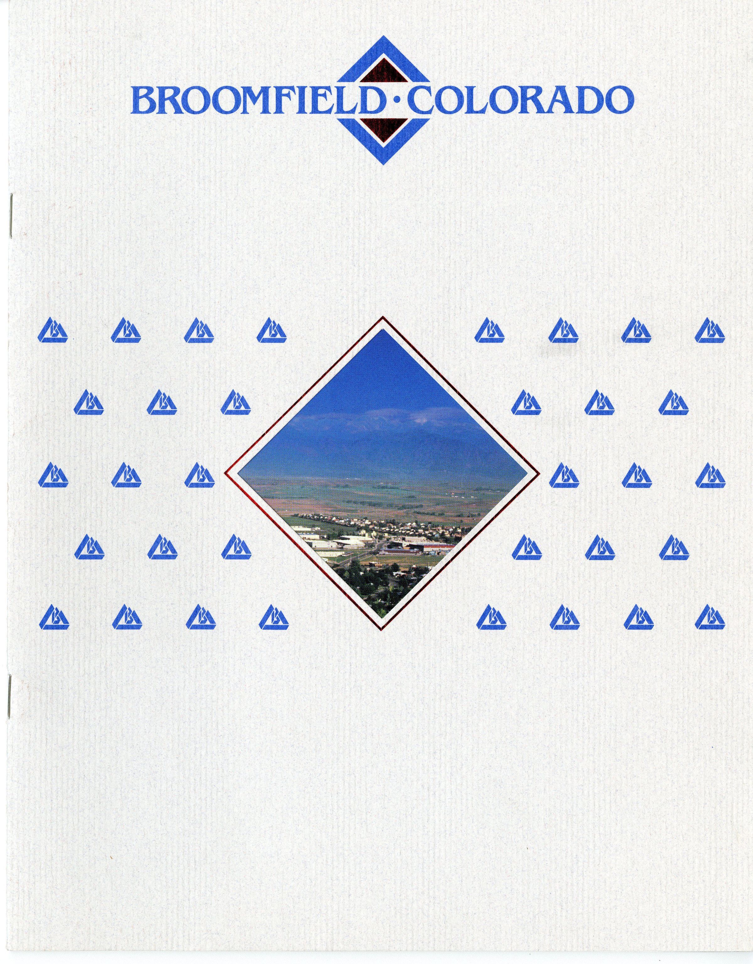 Promotional packet produced by the Broomfield Economic Development Corp, 1992. Includes light gray, single pocket folder Reading "Broomfield, Colorado" and a cut out to show an aerial image of Broomfield. Inside the folder is 4 double-sided glossy colored photo pages with text exclaiming how great Broomfield is as a place to live and work. In the folder pocket is three documents about the Broomfield Economic Development corporation, its history, services and activities, vision plan, and "Broomfield's Economic Profile" that outlines population, economic outlook, budgets, etc projected through the year 2000.Collection