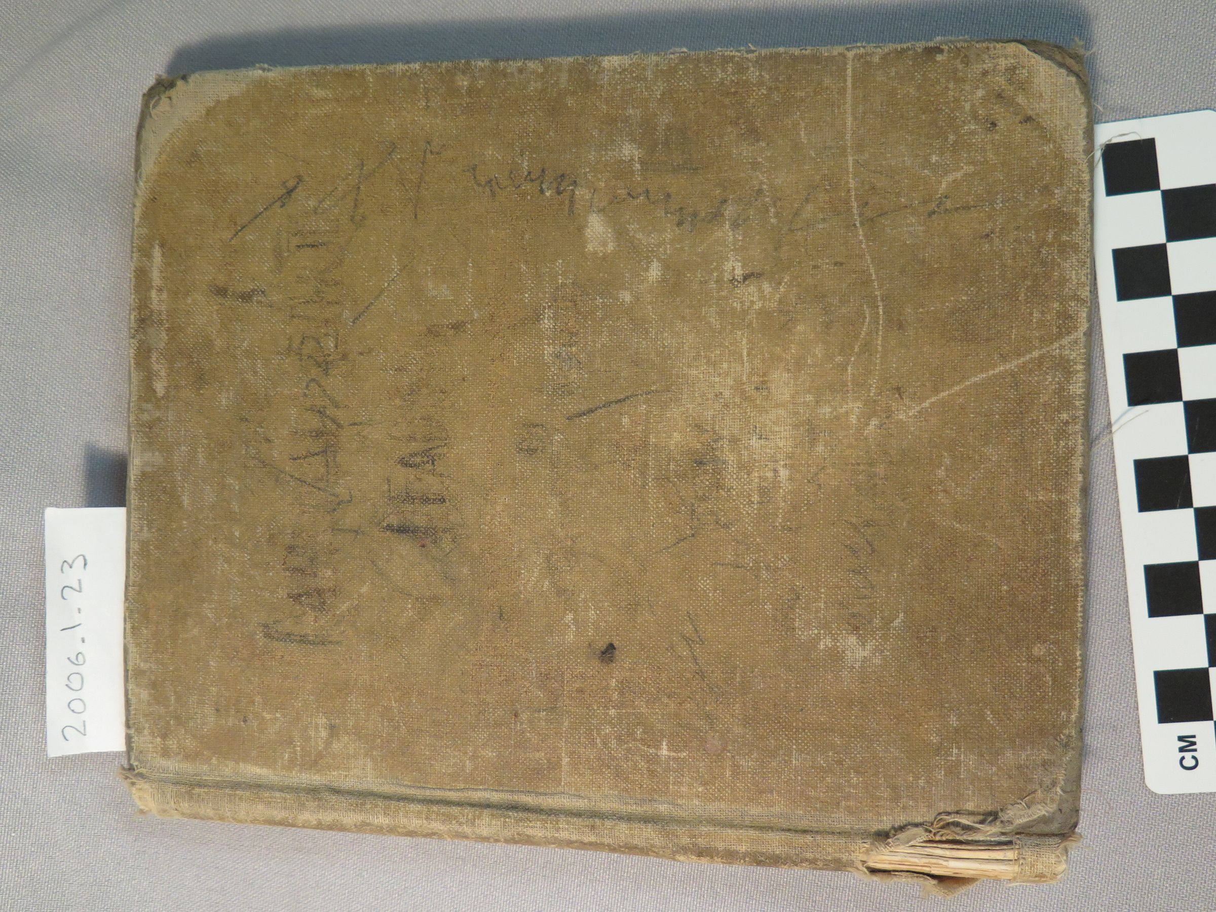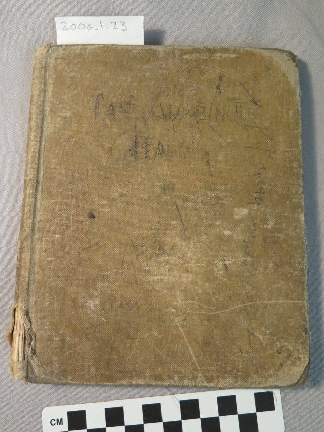 Children's reading primer, "The Rational Method in Reading: An Original Presentation of Sight and Sound Work that Leads Rapidly to Independent and Intelligent Reading" by Edward G. Ward. Primer (First Half-Year's Work), 1907. Light brown cloth cover, torn on bottom binding. Fair condition: some pages torn, many scribbles inside and out.Collection