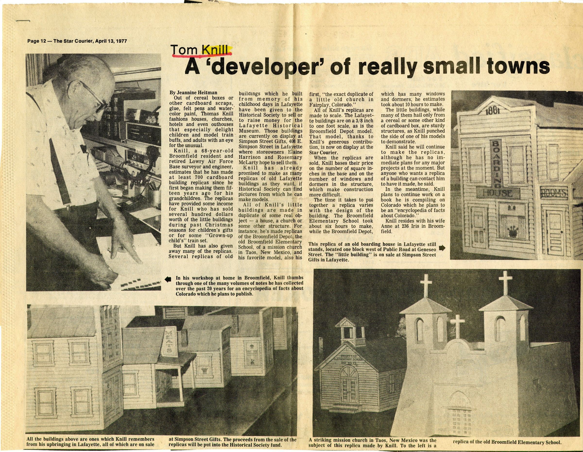 1-25-2023 Found an article when organizing old newspaper clippings about Tom Krill which has a picture of him with the this model. Scanned article and added to the record.