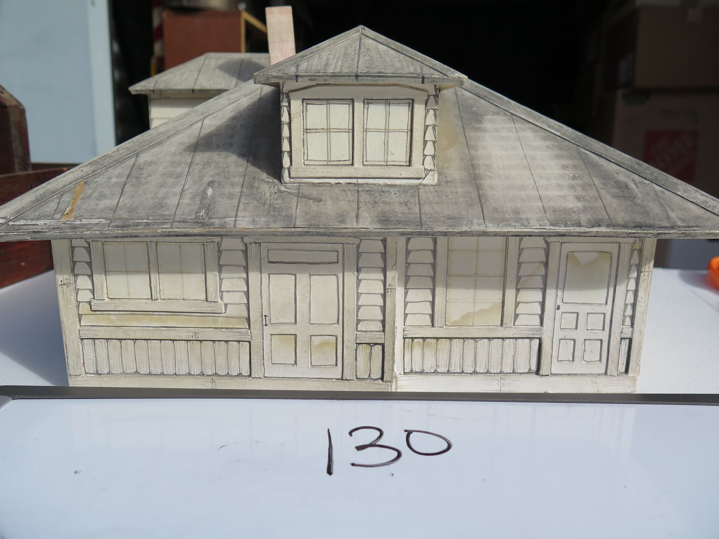 This is a paper model of the Broomfield Depot. The model measures 9" (h) x 15" (w) x 13" (d).