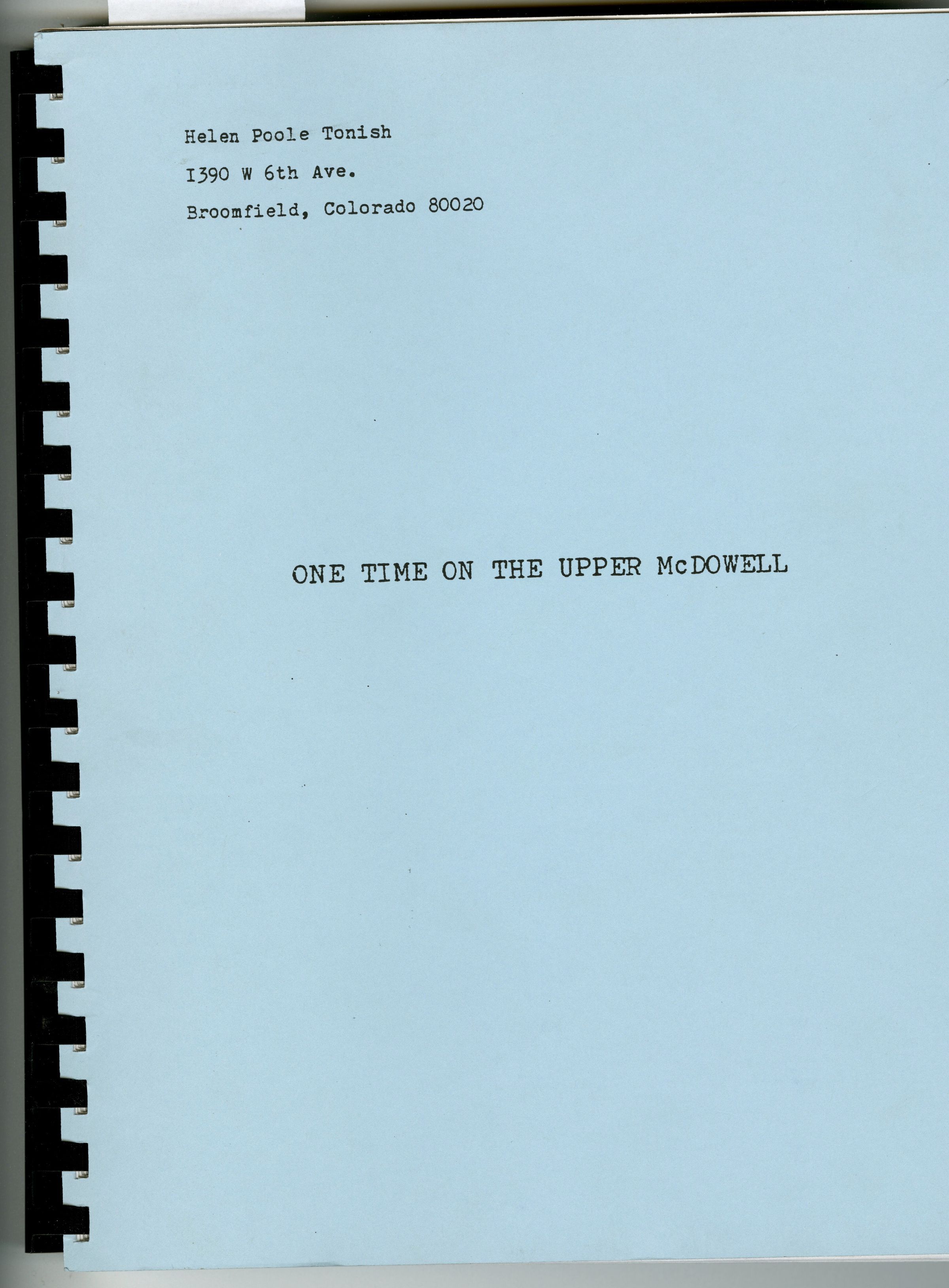 Book, "One Time on the Upper McDowell" by Helen Louise Poole.
