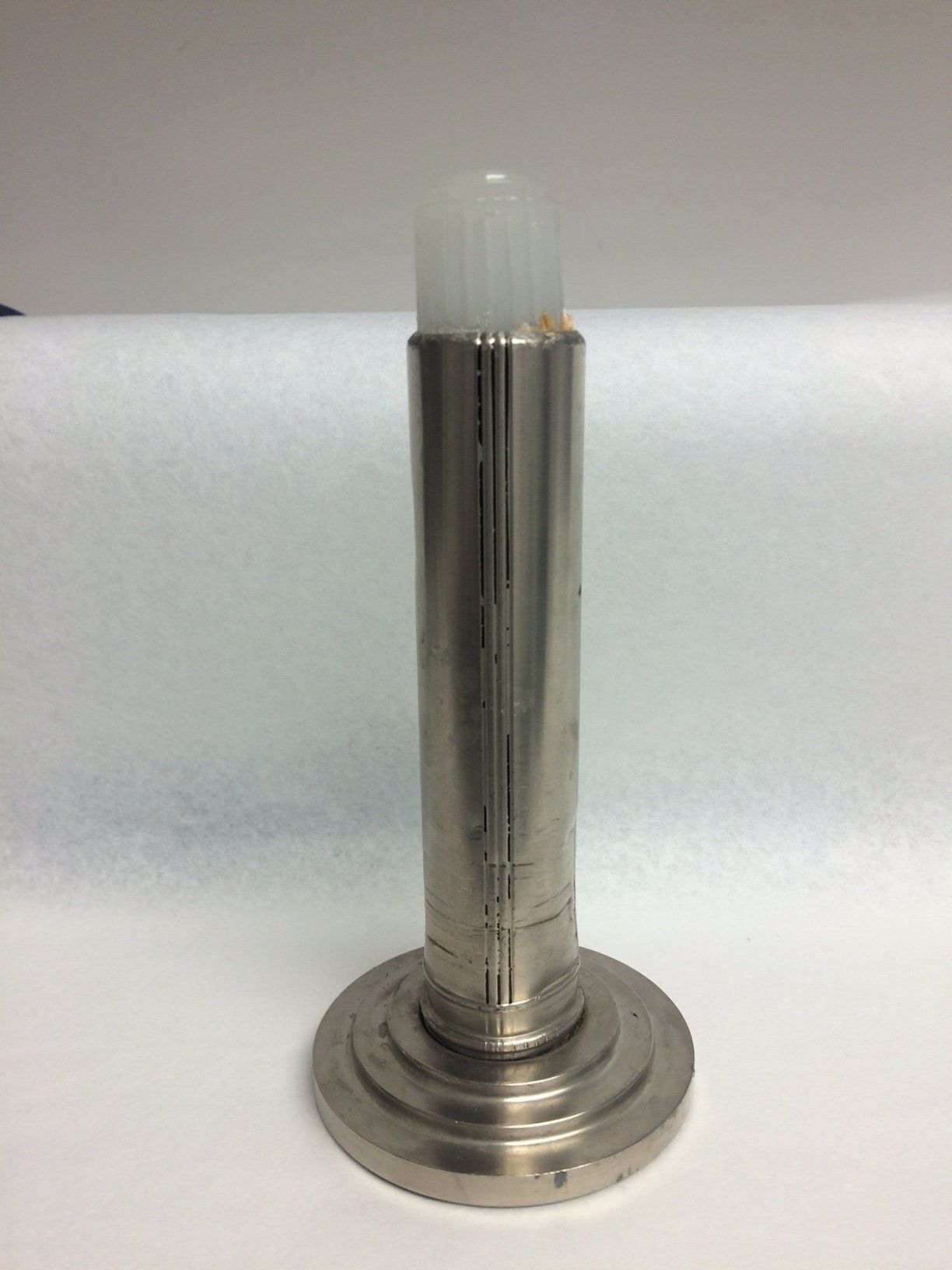This is an Art Moderne battery powered light made by Eveready. The light is 6 1/2" tall and has a 3" base. Text on the bottom says "Electric Candle, No. 1654, 2 unit cells."Collection