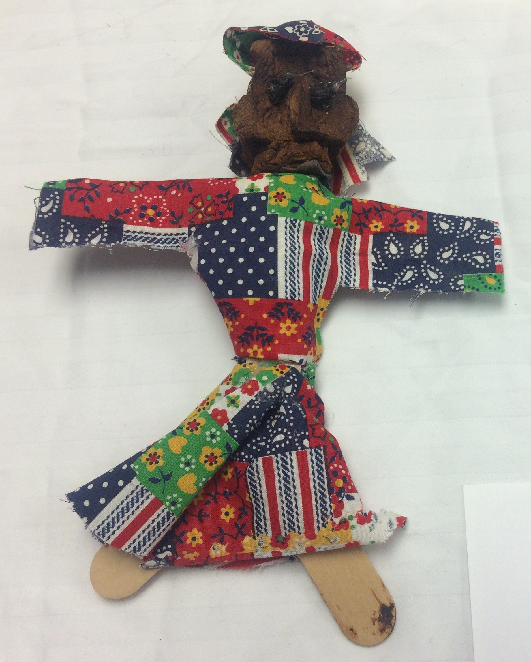 Former museum volunteer Mabel Massey said a little girl made it at school and brought it to the museum and asked the volunteers to put it in a case with other dolls on exhibit. This would have been prior to the sale of the collection to the city in 2011. Jacqui Ainlay-Conley, 04/16/2016Lexicon