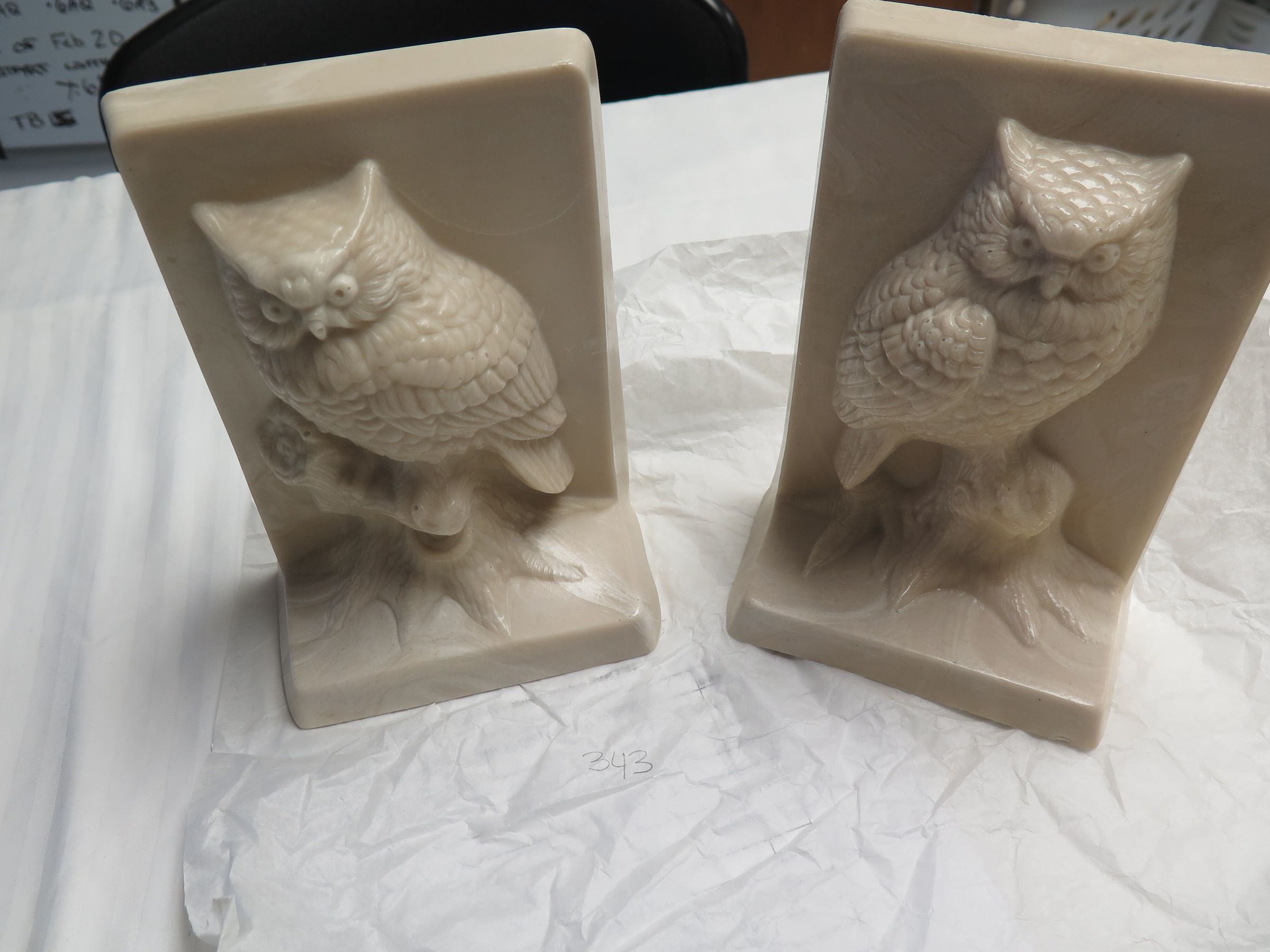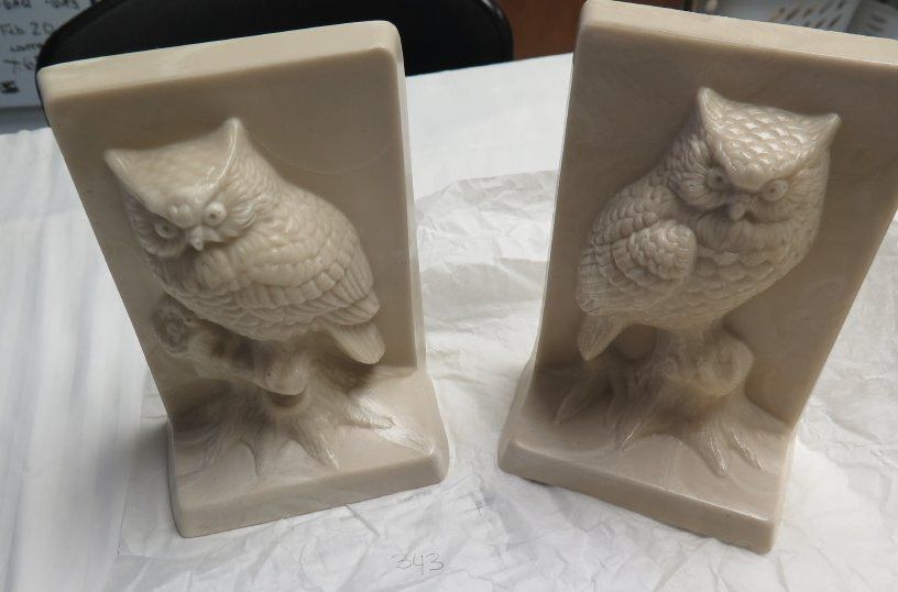 This is a set of two off-white marble owl bookends measuring 7.5" (h) x 5" (w) x 3"(d).