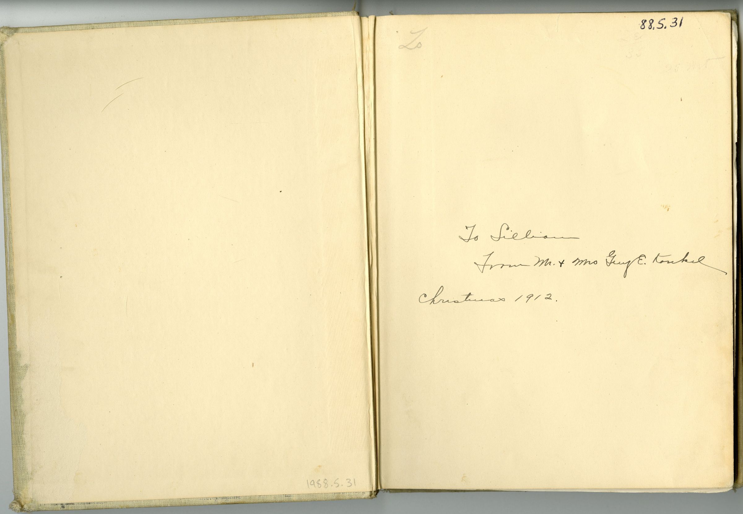 Book, "Helen's Babies," by John Habberton and illustrated by Hugo von Hofsten On first page is written "To ? From Mr. & Mrs. Guy E. ? Christmas 1912"