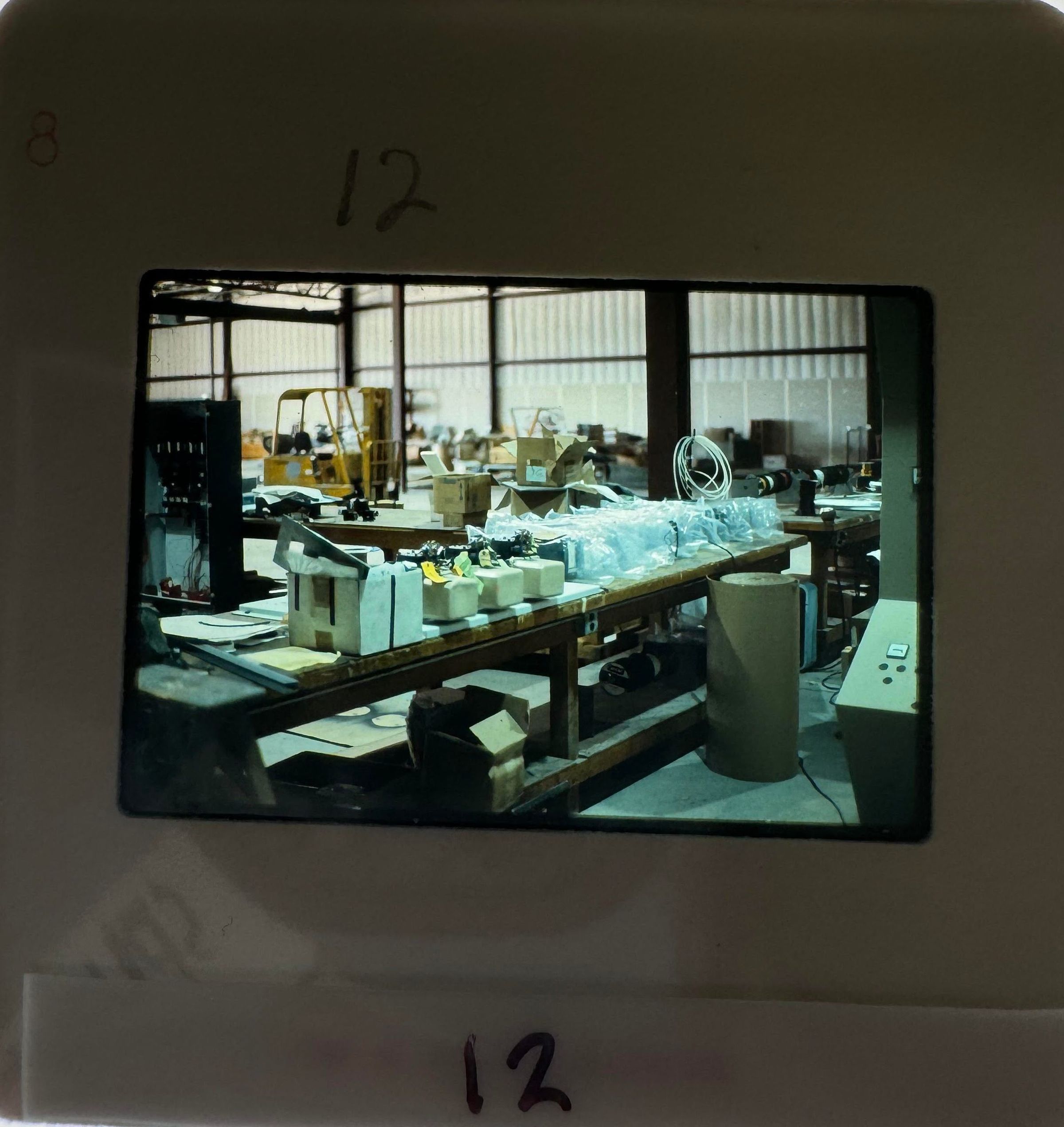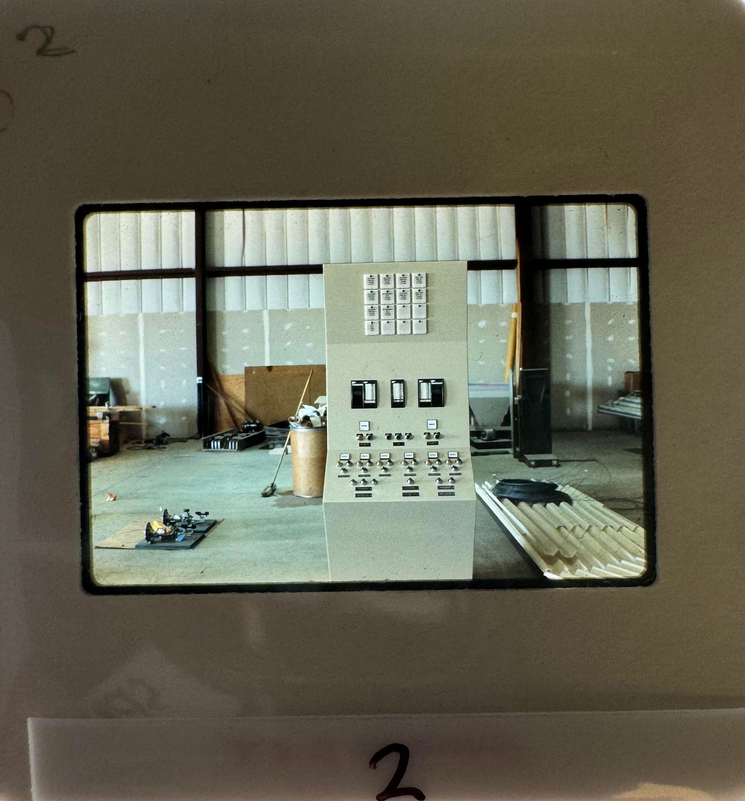 12) November 1978 - a partial view of the control panel from slide 2 but expanded to view the whole facility/warehouse, which might've house materials used for building the plant
