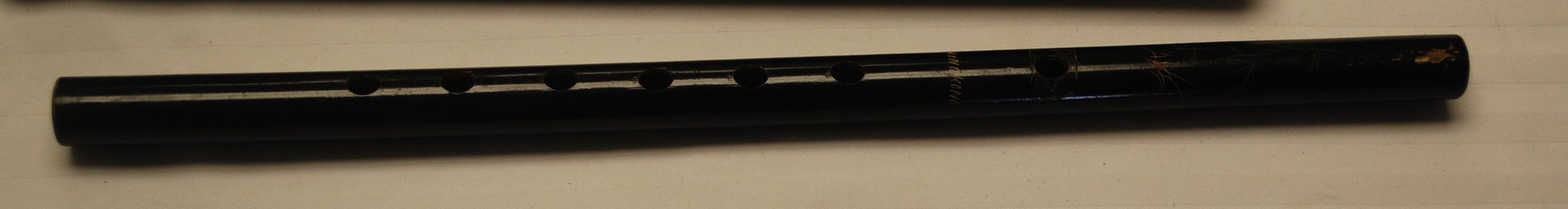 This is a black wood flute from Hong Kong. The flute measures 15" (l).