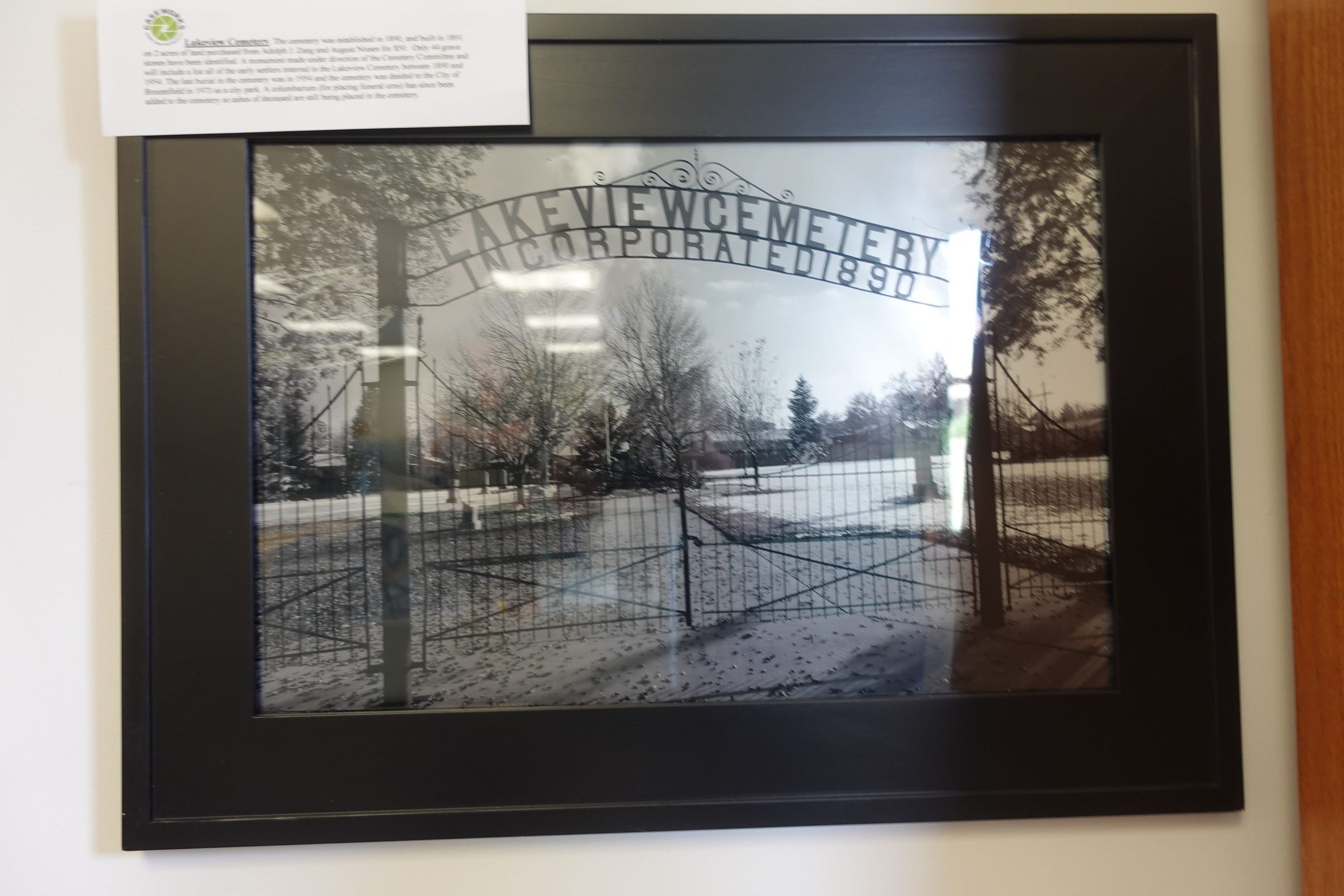 This is a modern black and white photo of the Lakeview Cemetery. The cemetery was established in 1890, and built in 1891 on 2 acres of land purchased from Adolph J. Zang and August Nissen for $50. Only 44 grave stones have been identified. A monument made under direction of the Cemetery Committee and will include a list all of the early settlers interred in the Lakeview Cemetery between 1890 and 194. The last burial in the cemetery was 194 and the cemetery was deeded to the City of Broomfield in 1973 as a city park. A columbarium (for placing urns) has been added to the cemetery so ashes of deceased are still being placed in the cemetery.