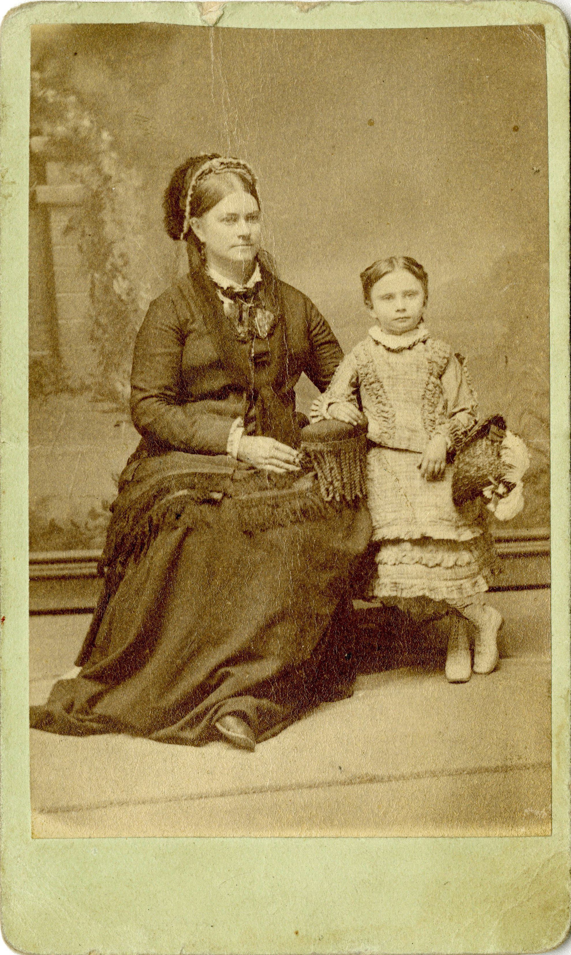 Cabinet card photograph of a mother and daughter. Possibly Elizabeth Crawford (Mile's grandmother), or the mother of Ada Crawford (ne Ada Coward) who was born in the 1870s, or possibly a relation of Emily Crawford. Dating based on clothing worn by sitters.