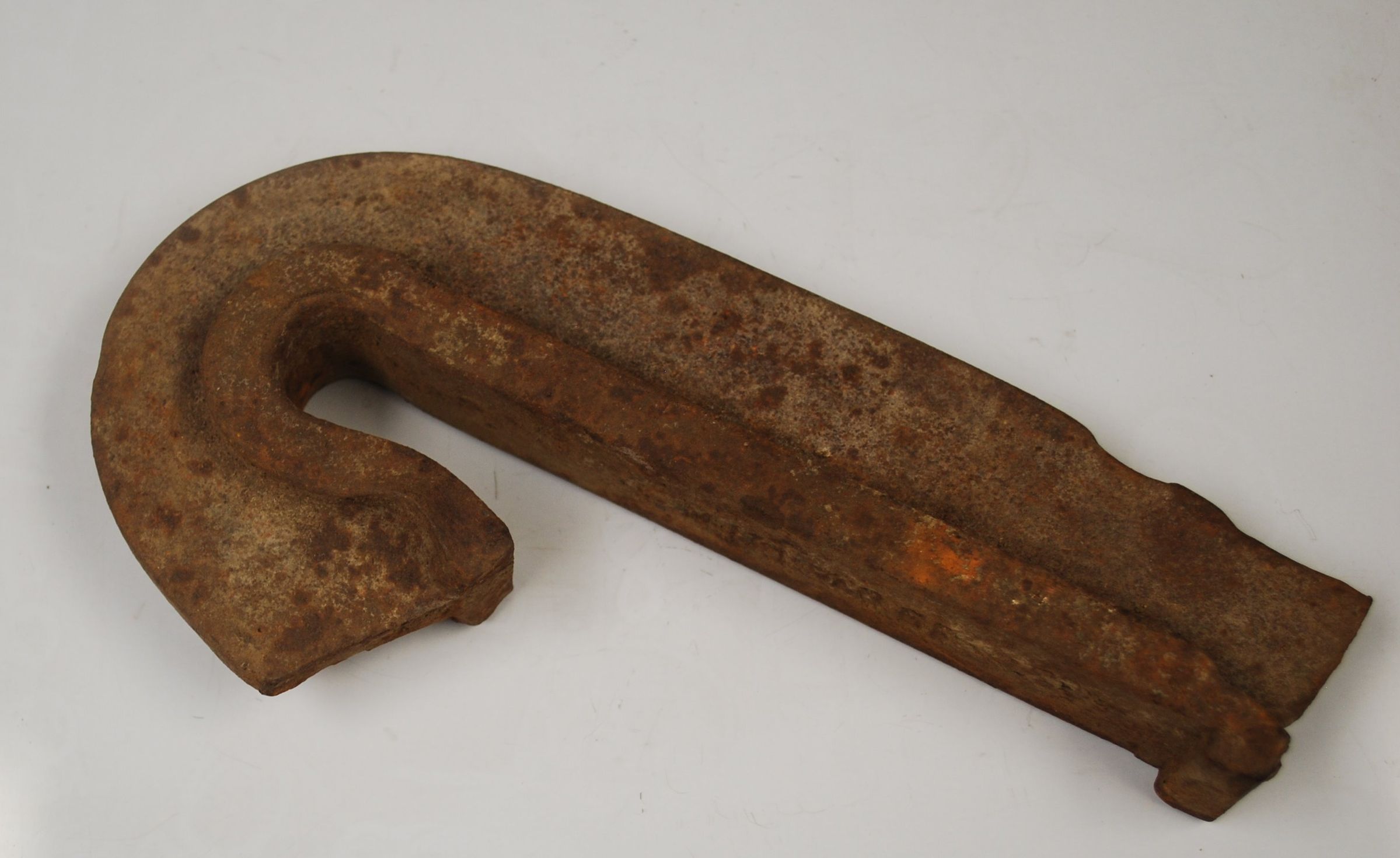 According to museum volunteer Tom Peyton, this anchor is mounted on the inside of the rail next to a tie.