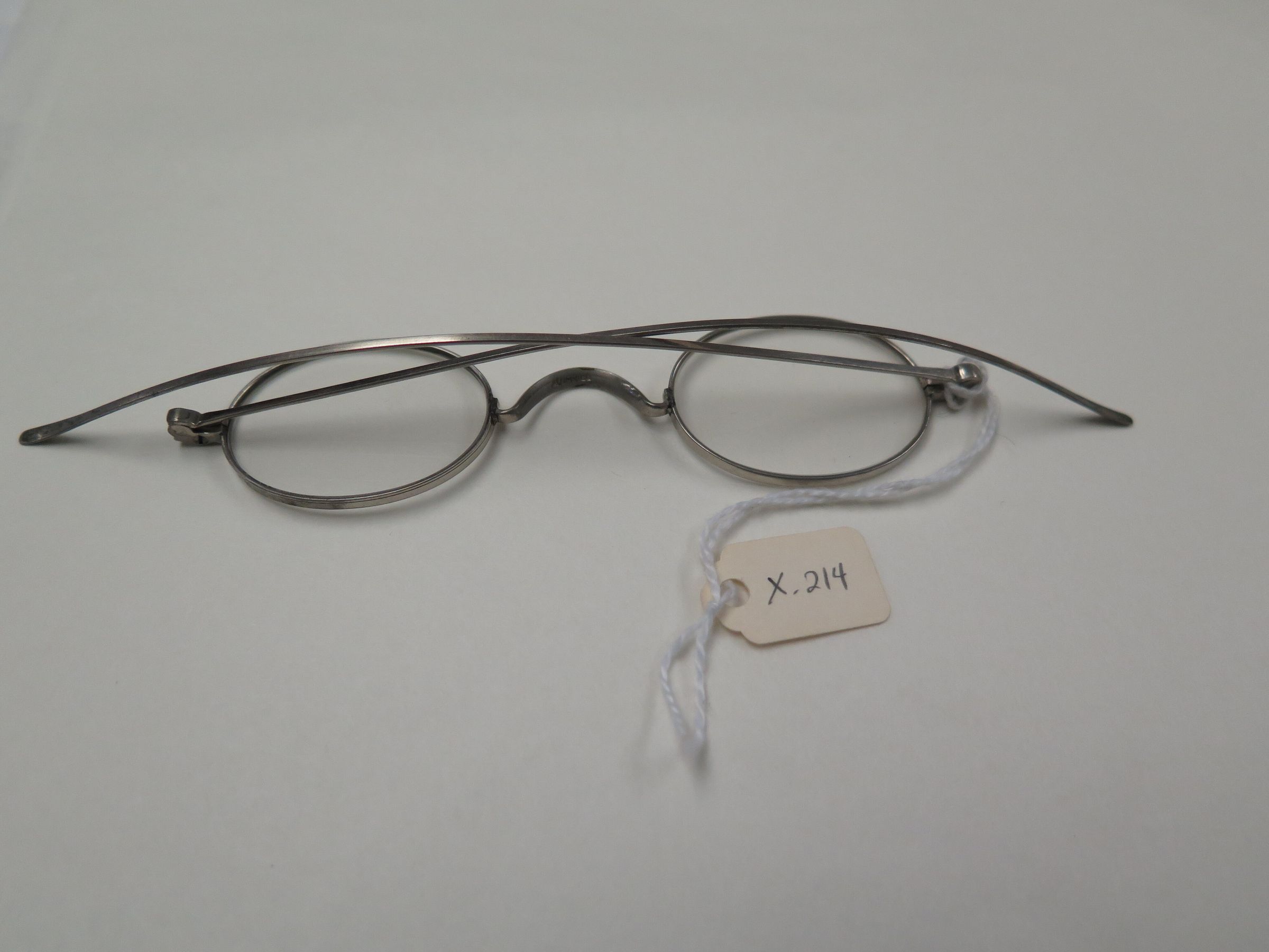 These are a pair of metal-rimmed eyeglasses which measure 6.25" (W) x 1" (H).