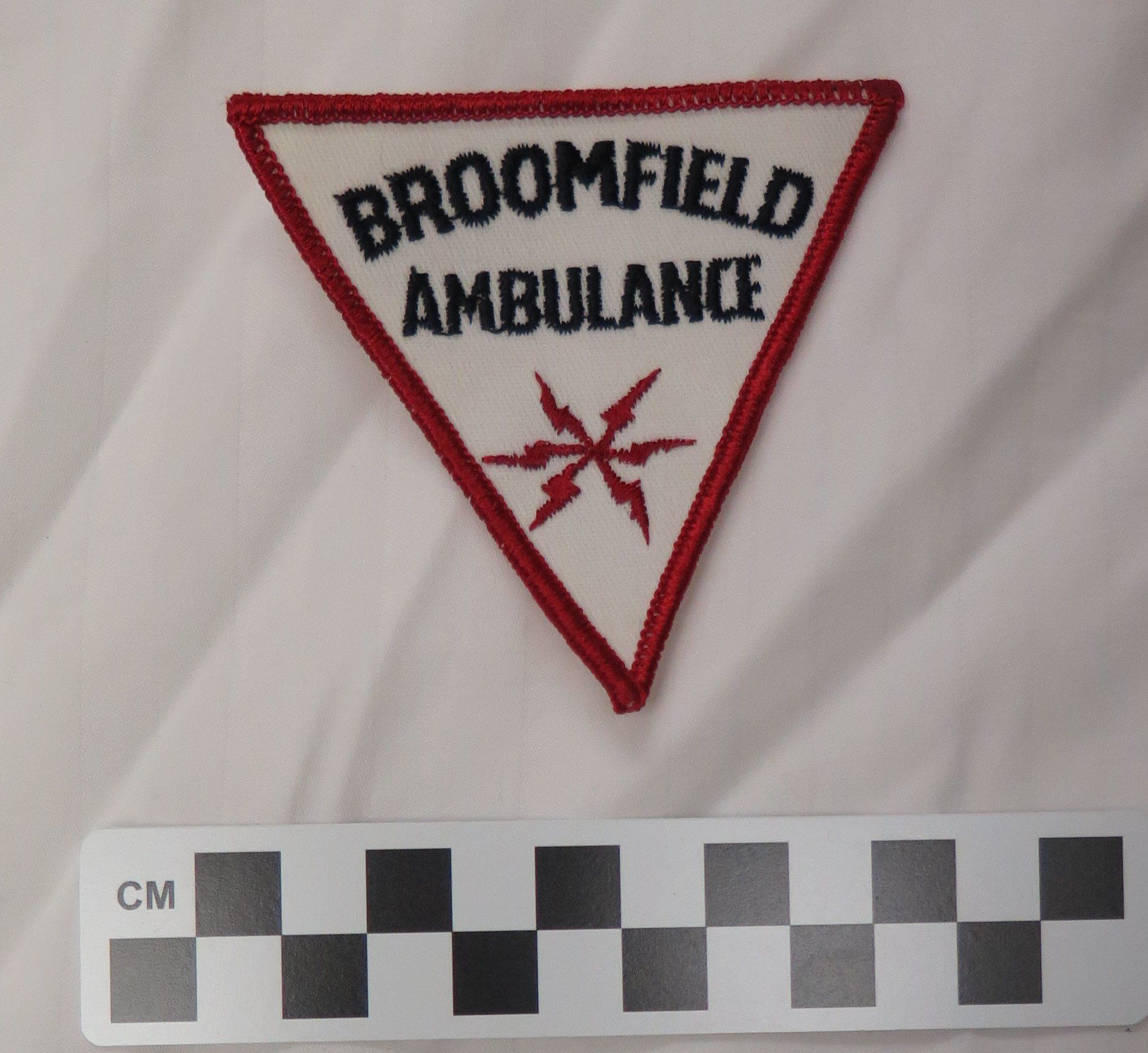 This ambulance personnel cloth patch measures 3"(H) x 3"(W) each. It reads "Broomfield Ambulance"