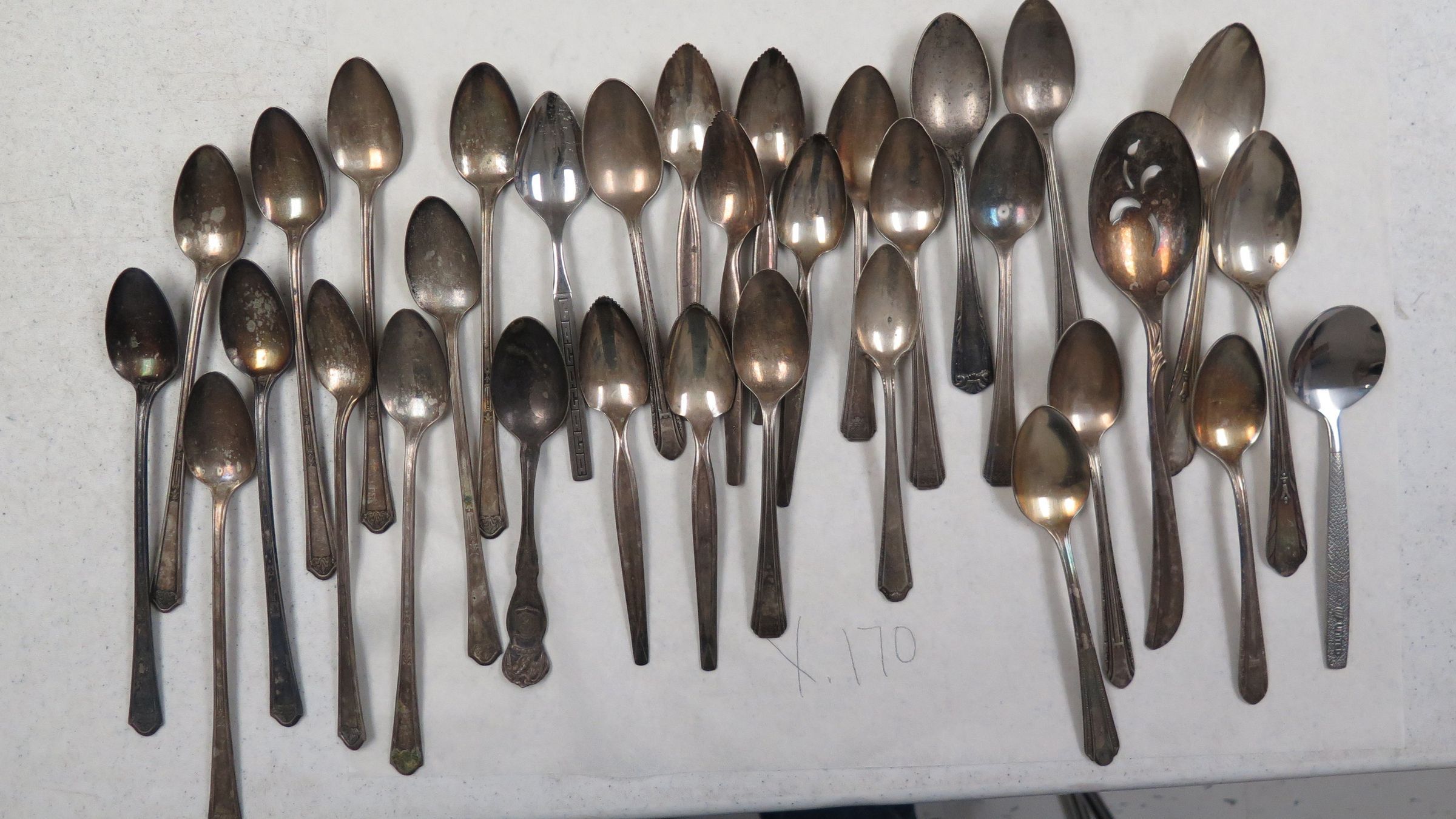 This is an unmatched set of table service spoons. These include tea spoons and serving spoons.