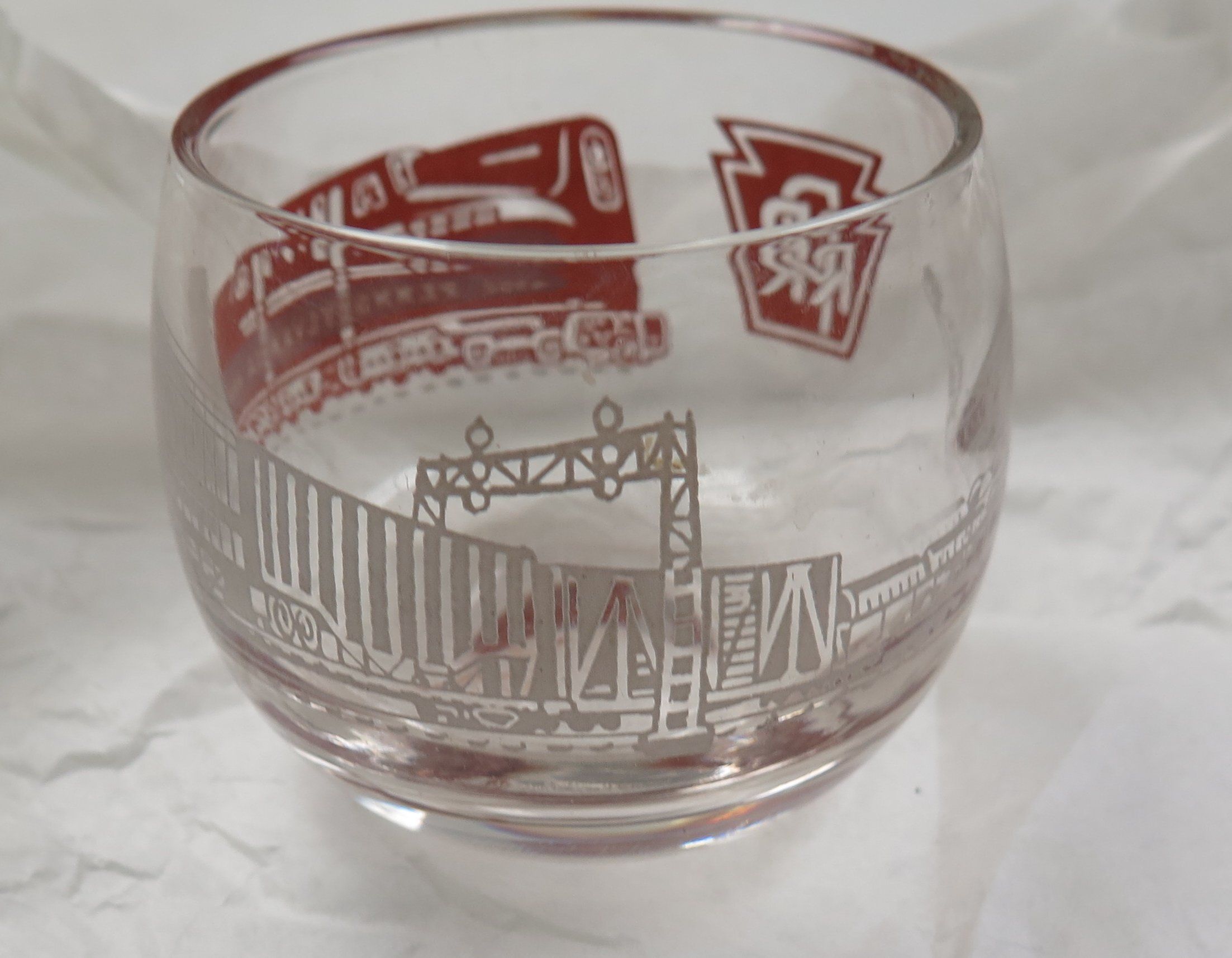 This is a clear "High Ball or "Rocks" glass 2.5"(H) x 2.5"(Dia) that features a Pennsylvania train scene.