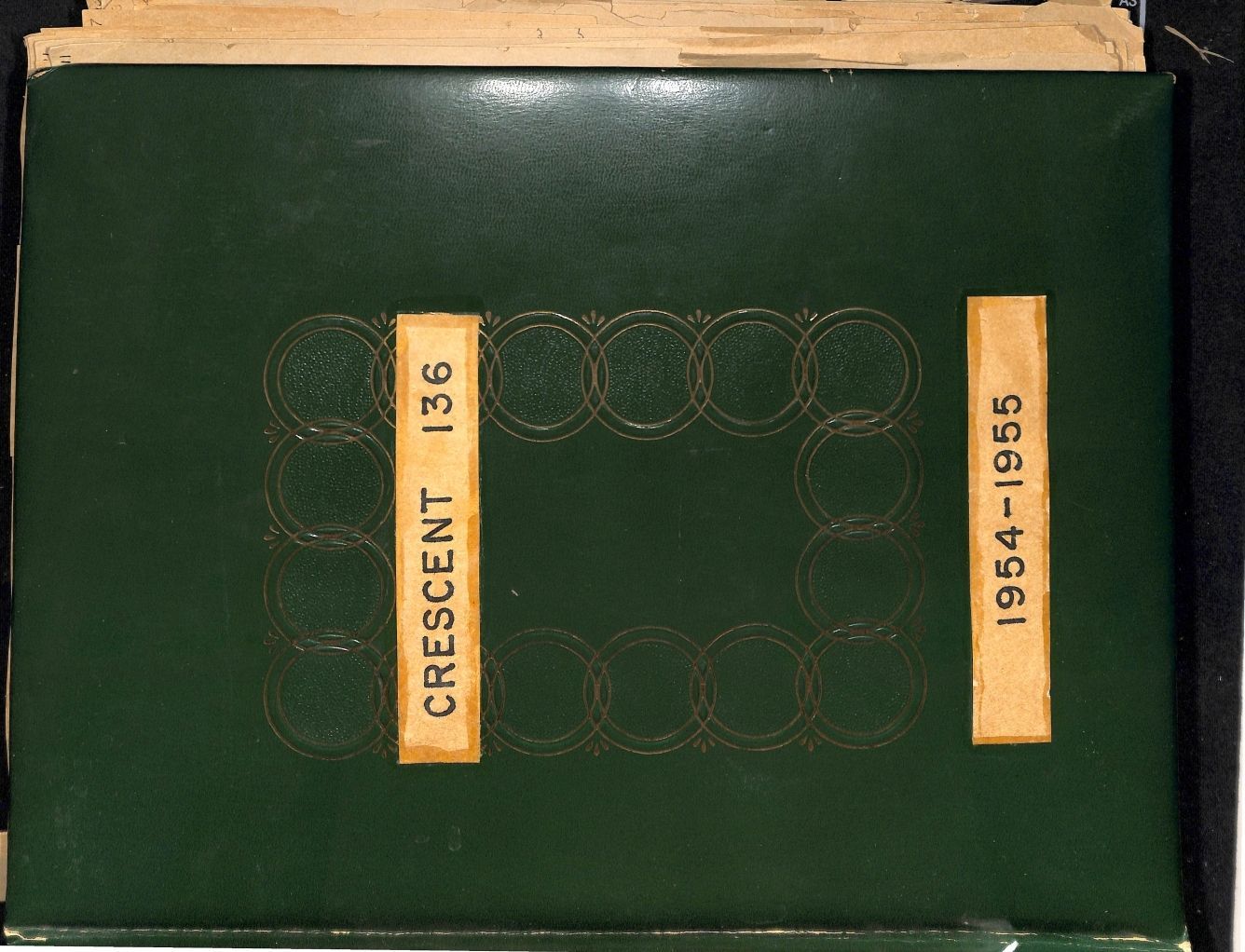 Item is a large hard-cover scrapbook from the Crescent Grange, an organization that served as a means of social gathering for early Broomfield residents. The cover is dark green with gold accents, and the words "Crescent 136 / 1954-1955" are glued to the front. The pages are bound by a string. The scrapbook covers events that occurred from September 1, 1954, to September 1, 1955, and the book is split into sections by season. It is mostly full of newspaper articles highlighting various events the Grange members were involved with, but it also includes pamphlets, crafts, and programs. Many of the events are organized with dates and photographs of some of the people in attendance.Collection