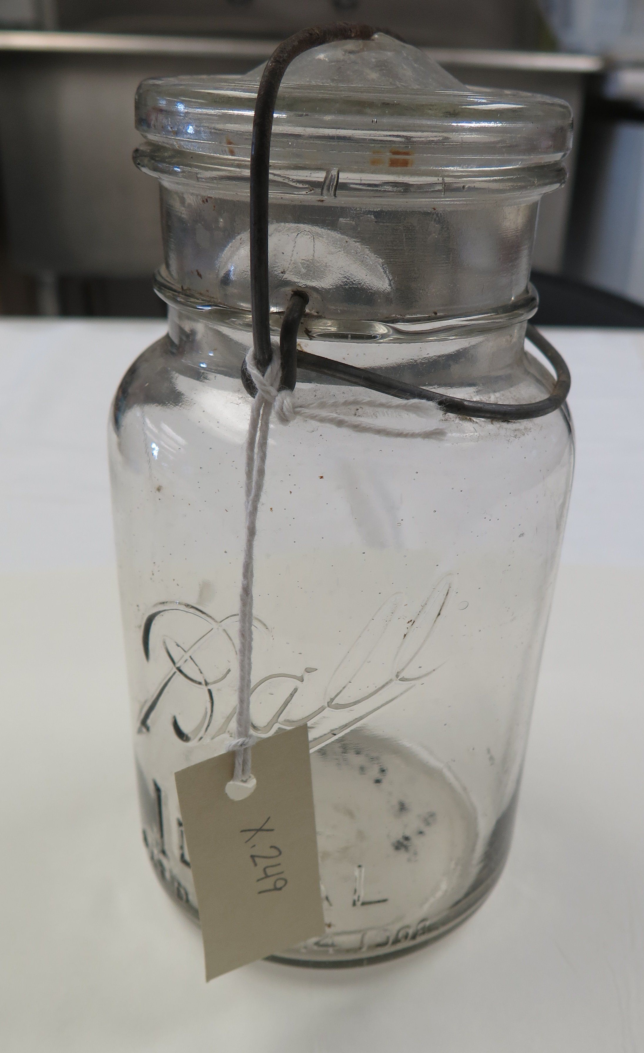 Side of Ball jar: Origsize: 7" (h) x 3.5" (dia); Origformat: Artifact