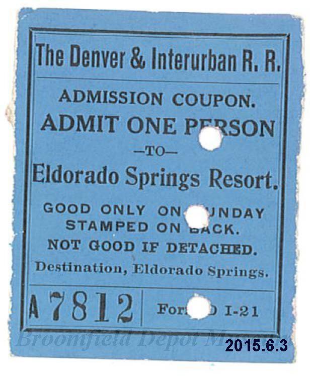Denver & Interurban R.R. Admission Coupon for Eldorado Springs Resort