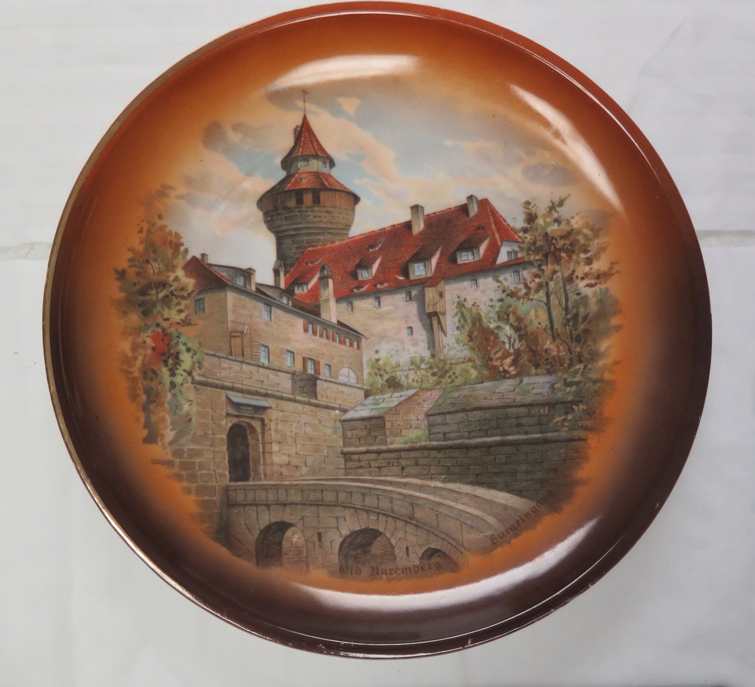 This is a 10.5"(Dia) decorative ceramic plate with a castle image.