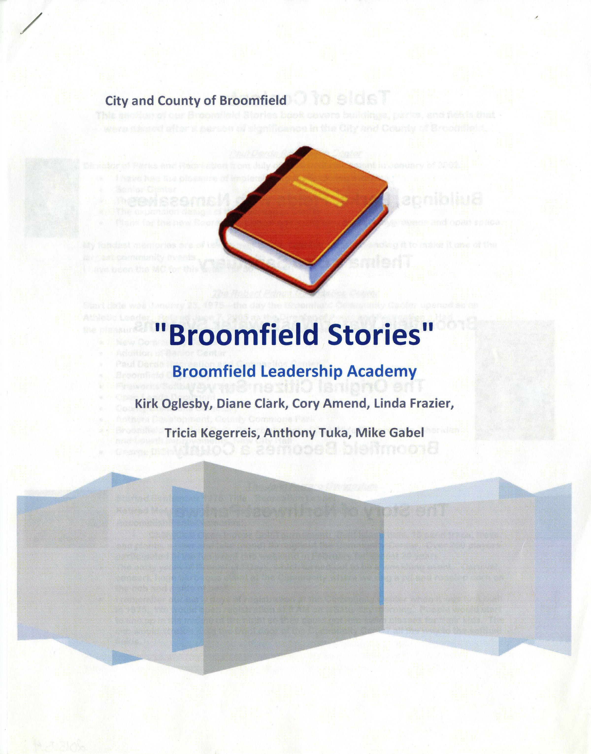 Final report for the Broomfield Leadership Academy class organized by the City and County of Broomfield. Class students were Kirk Oglesby, Diane Clark, Cory Amend, Linda Frazier, Tricia Kegerreis, Anthony Tuka and Mike Gabel.