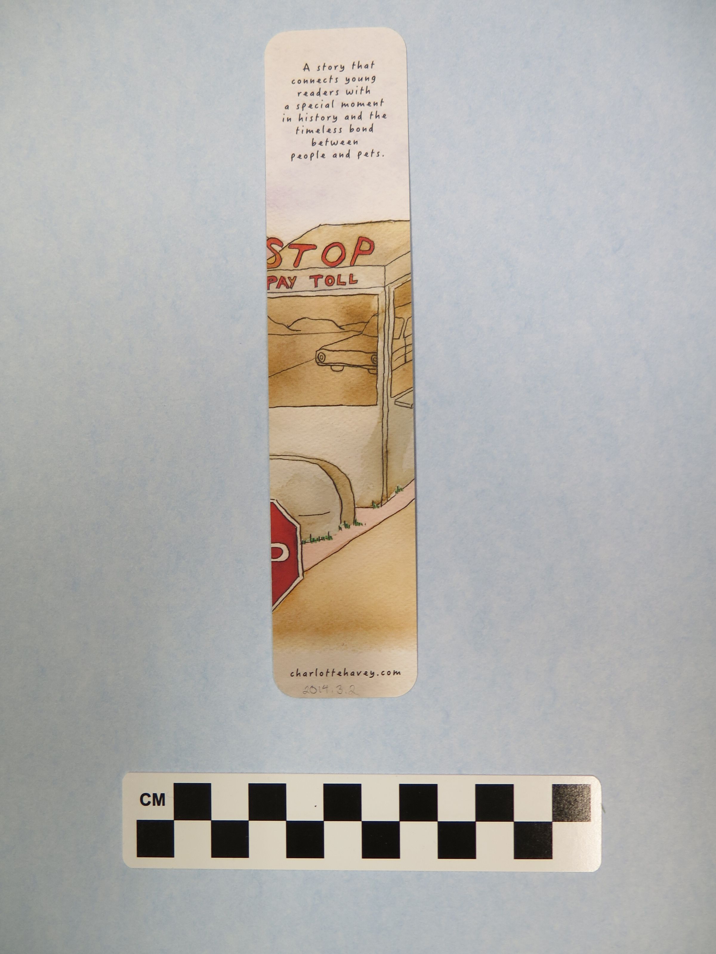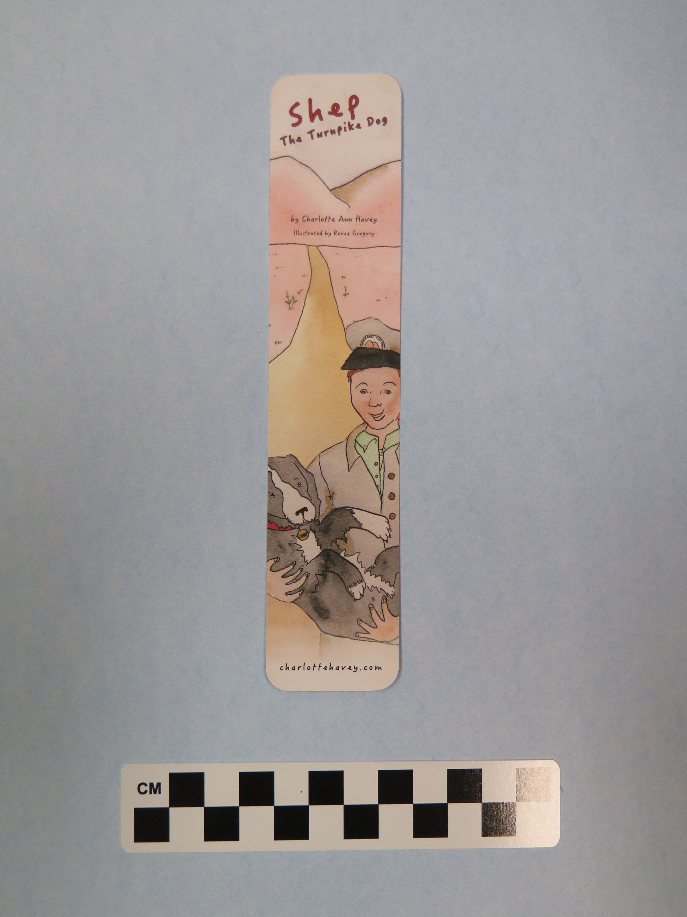 This bookmark was donated with the children's picture book Shep the Turnpike Dog, by the author Charlotte Ann Havey