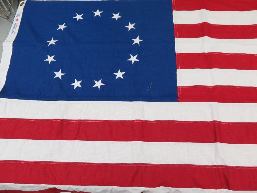 This is a 3' x 5' cotton EMB Betsy Ross Flag. The flag is made up of red and white stripes, with a blue square in the top left corner. In the blue square is a circle of white stars.Collection