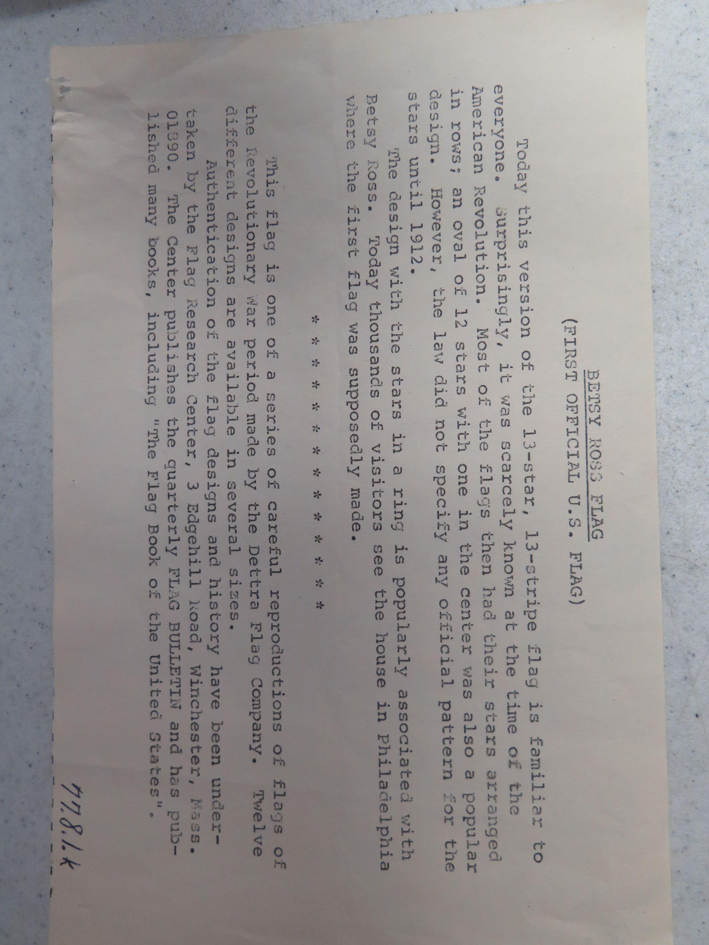 Broomfield Centennial-Bicentennial Commission EMB Betsy Ross FlagEntry/Object ID