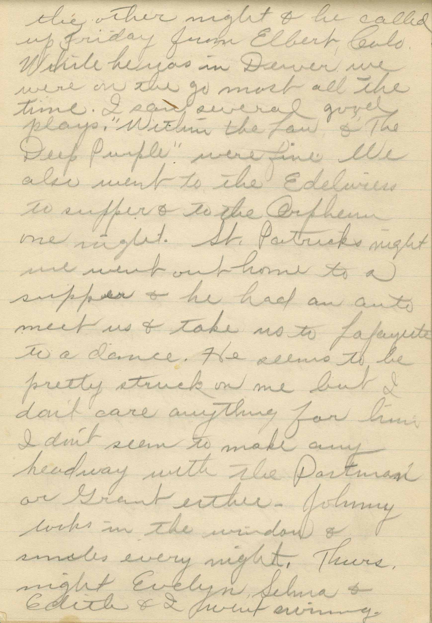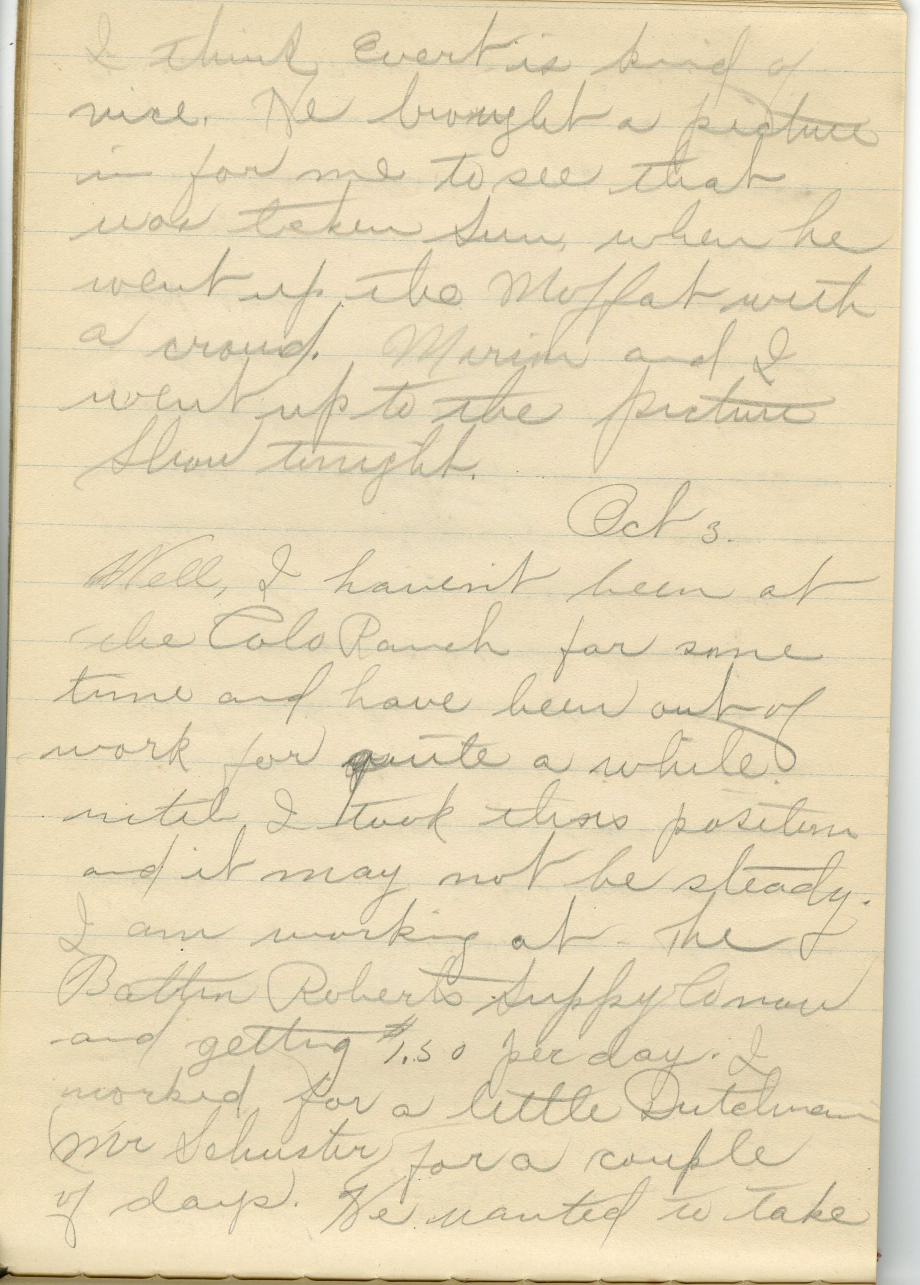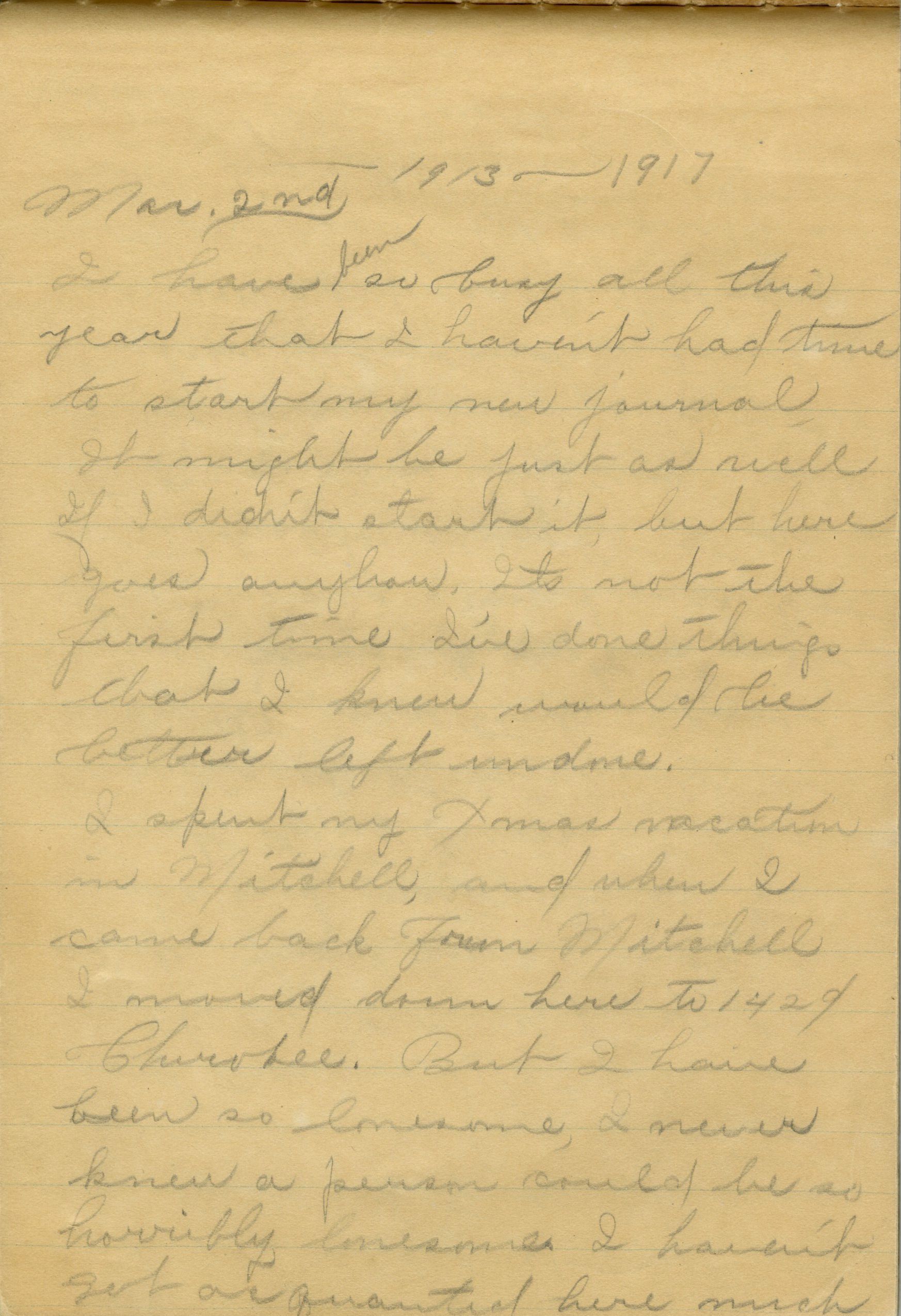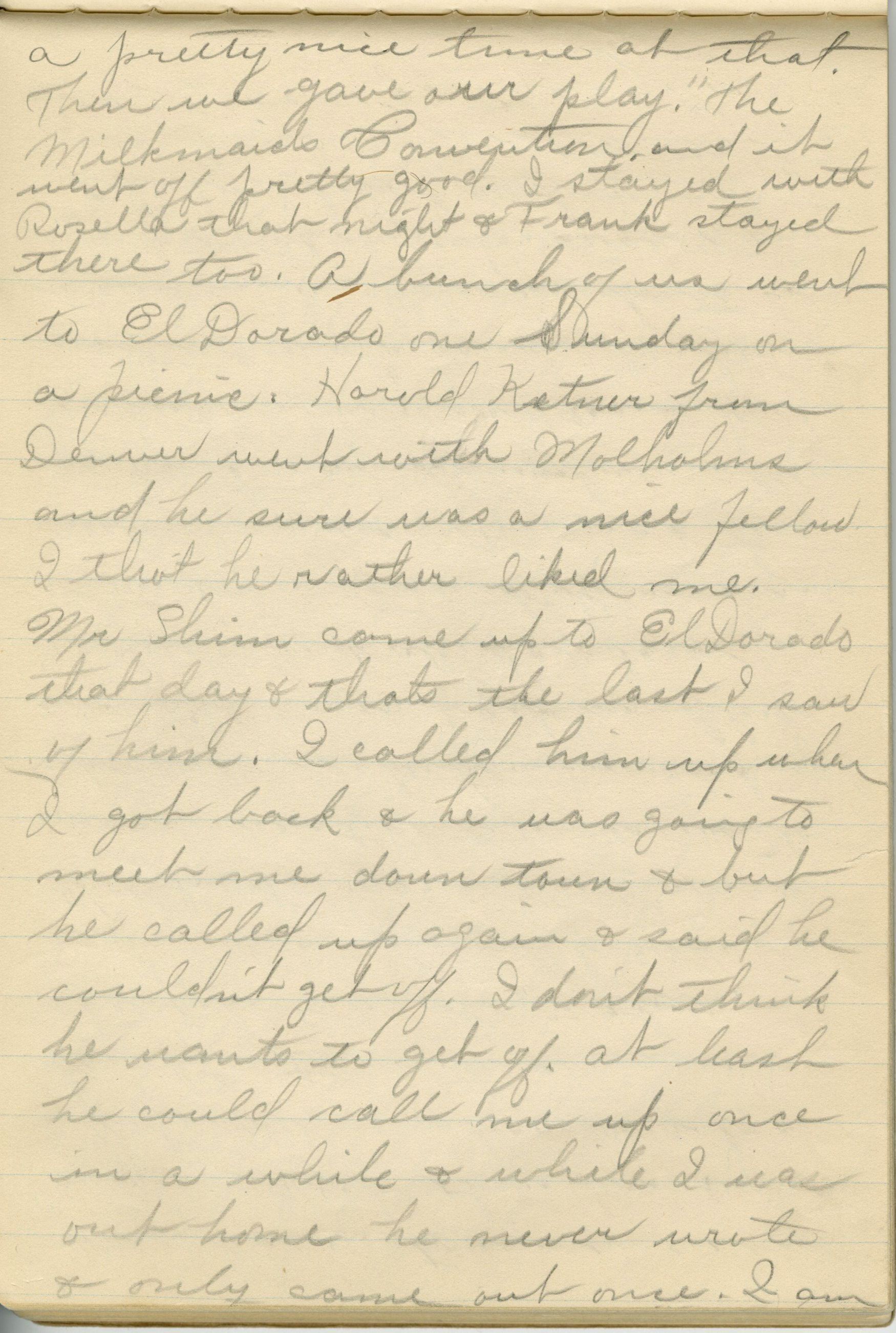 Custodial History: Frances Cron kept and wrote in two diaries from 1910 until 1917, when she married her husband, Russell Ridsdale. Both diaries, as well as a collection of Frances' photographs and poems, were eventually passed on to one of Frances' daughters, Janet Ridsdale Justice-Waddington. Janet donated the poems and digital scans of the journals and photographs to the Broomfield Depot Museum in 2015.