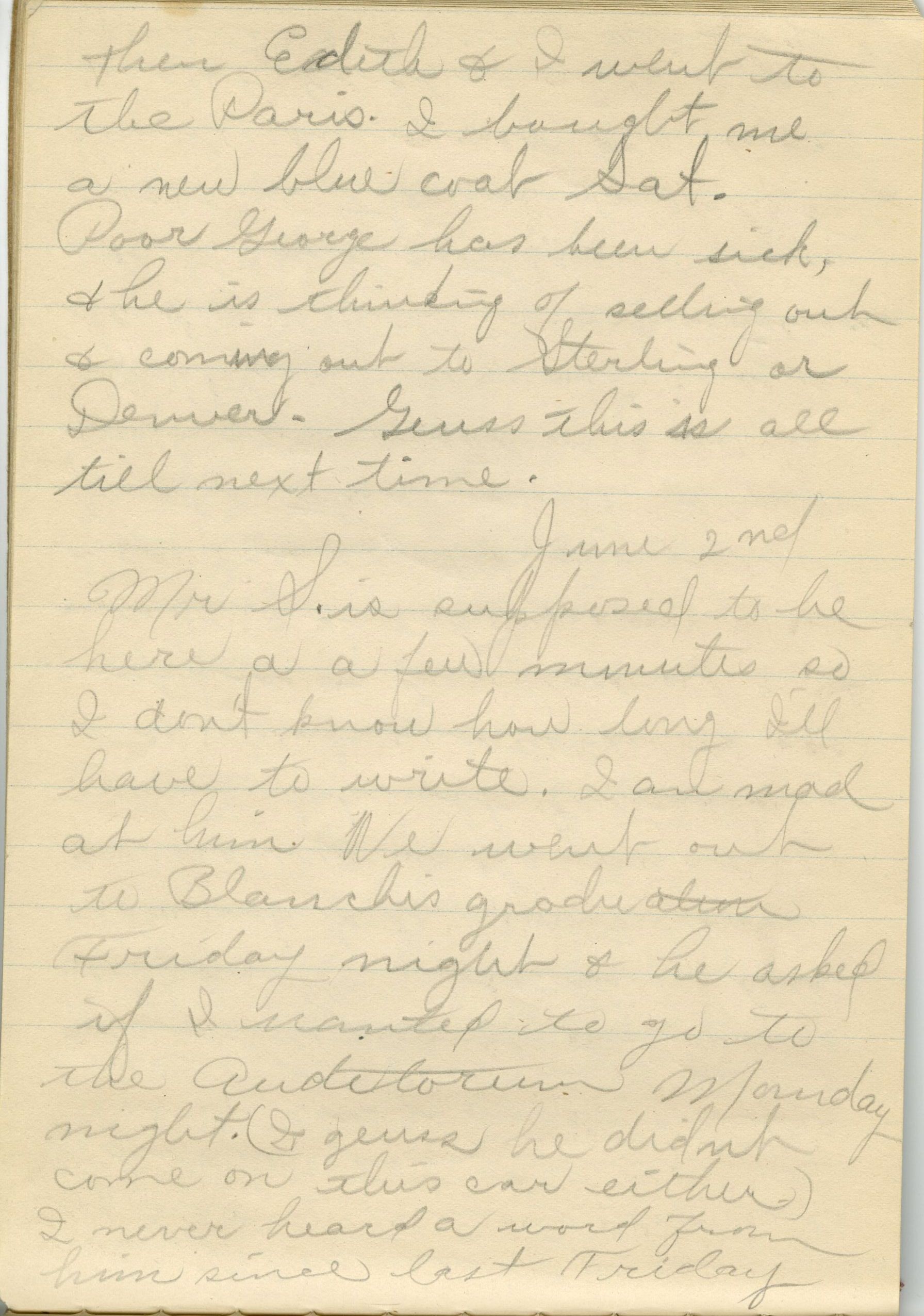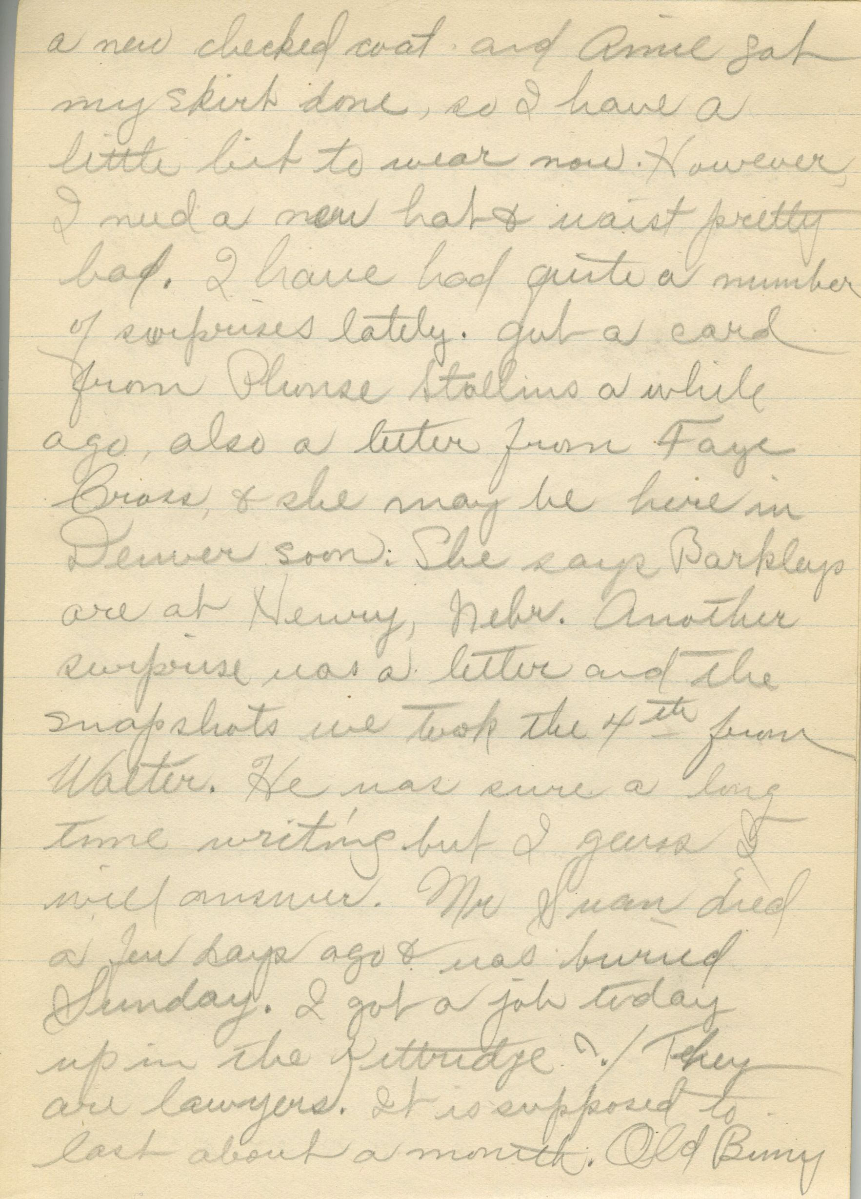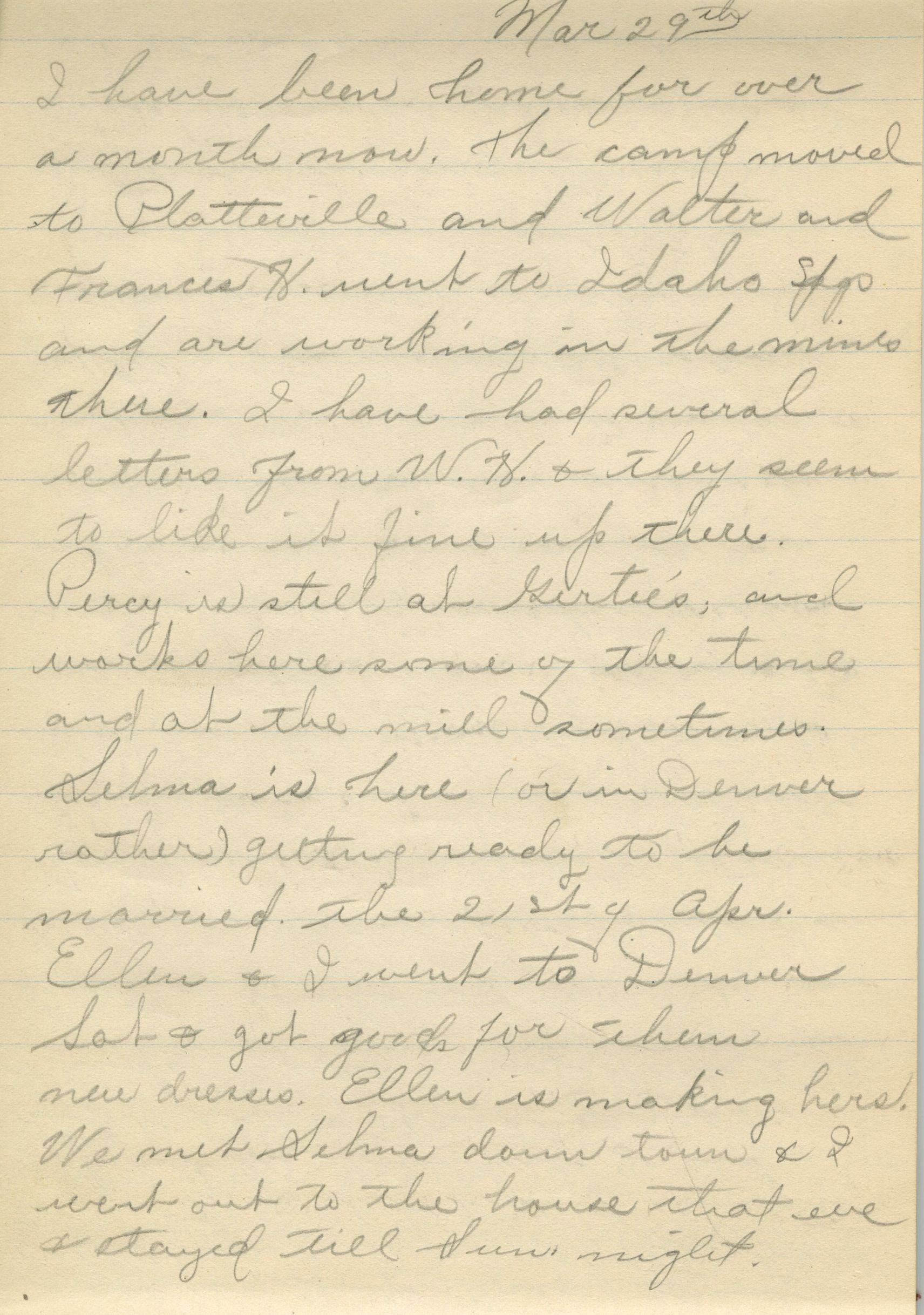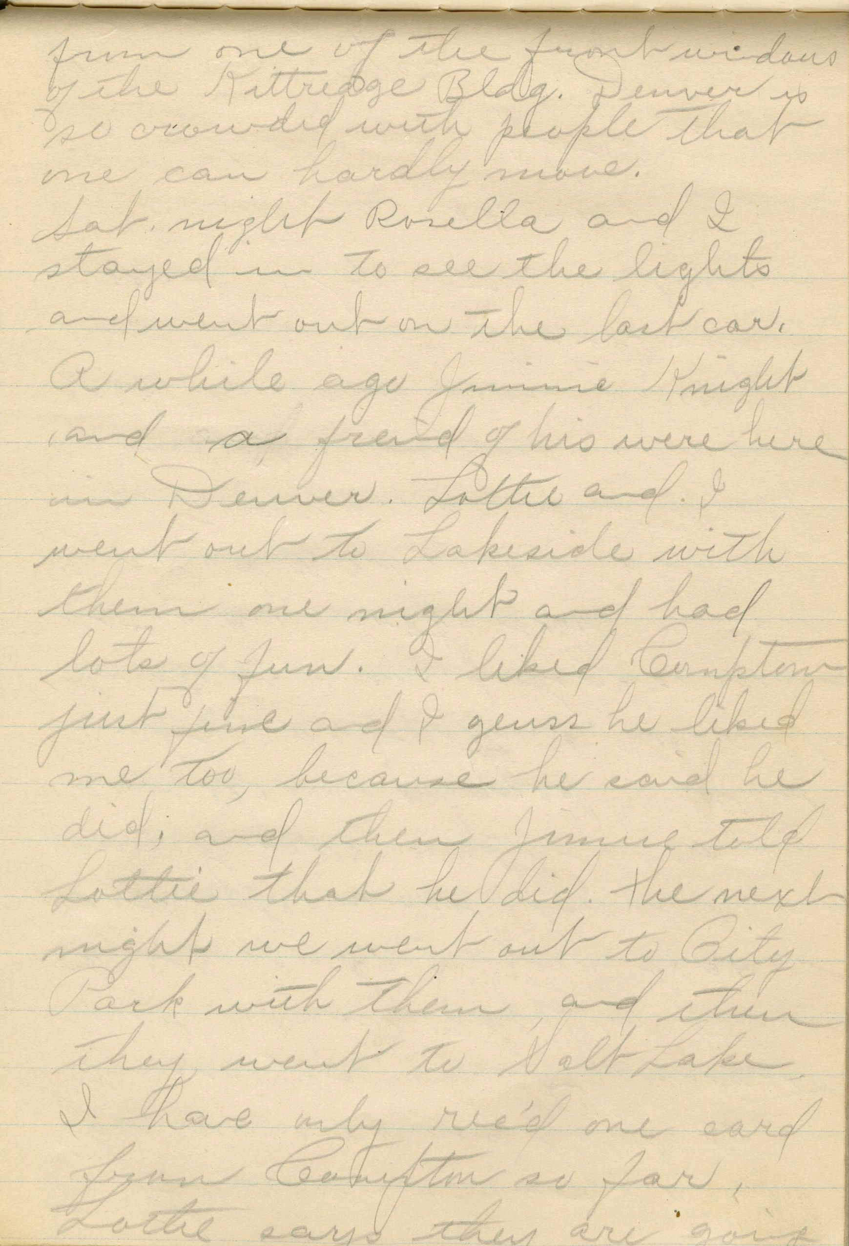 William remarried in 1914, taking Amie Collum as his wife. Amie was related to the Browns' neighbors, William, Rosella, and Annie Burgess, whom Frances was very close to. Frances - who had an eighth grade education from schools in Broomfield - then decided to continue her education at Barnes Business College in Denver. Utilizing the Denver and Interurban passenger lines on the Kite Route, she later worked as a secretary at various Denver businesses.