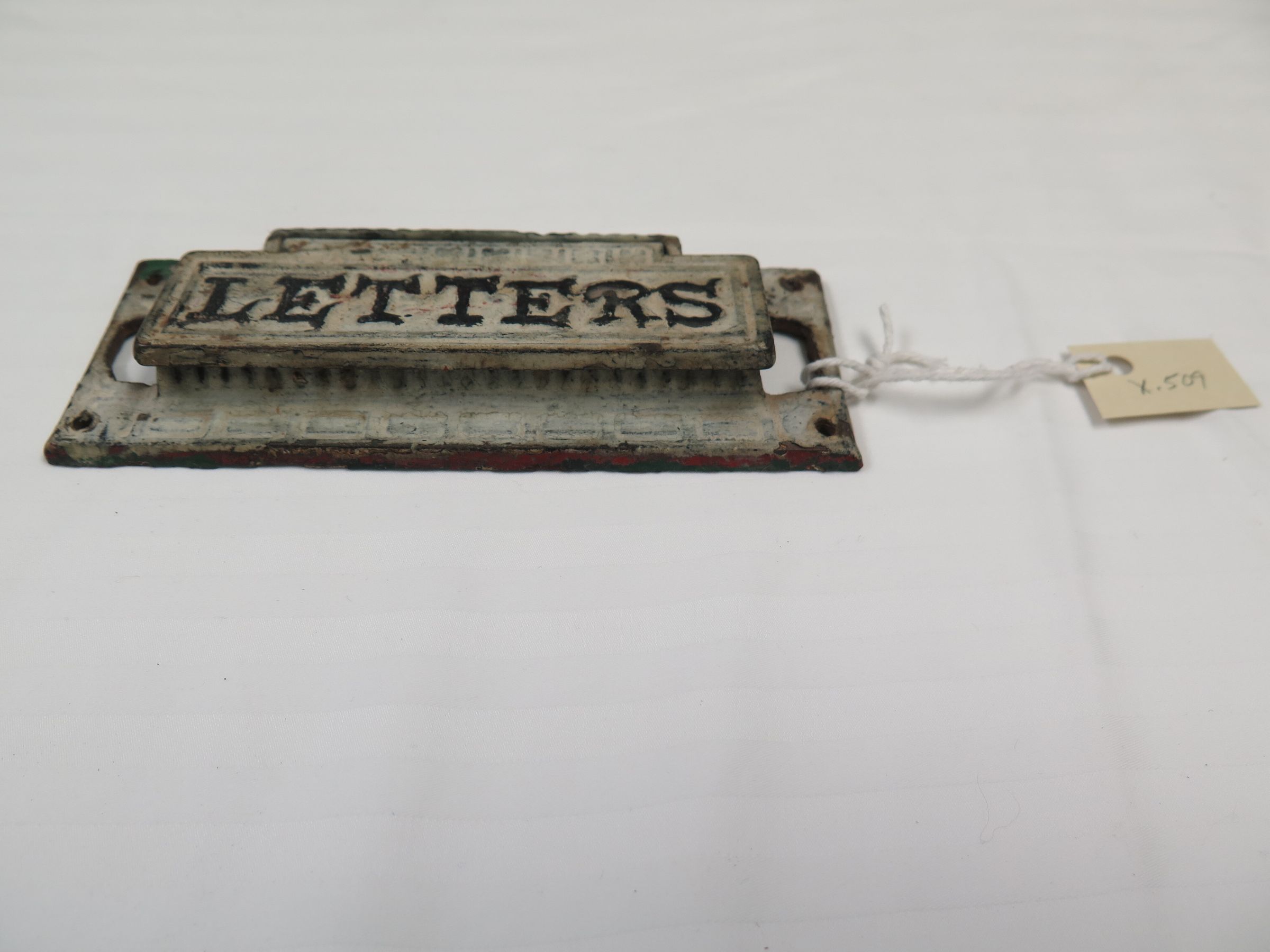 This is a metal "Letters" door cover. The metal cover measures 2.25" (h) x 6" (w) x 0.75" (d).