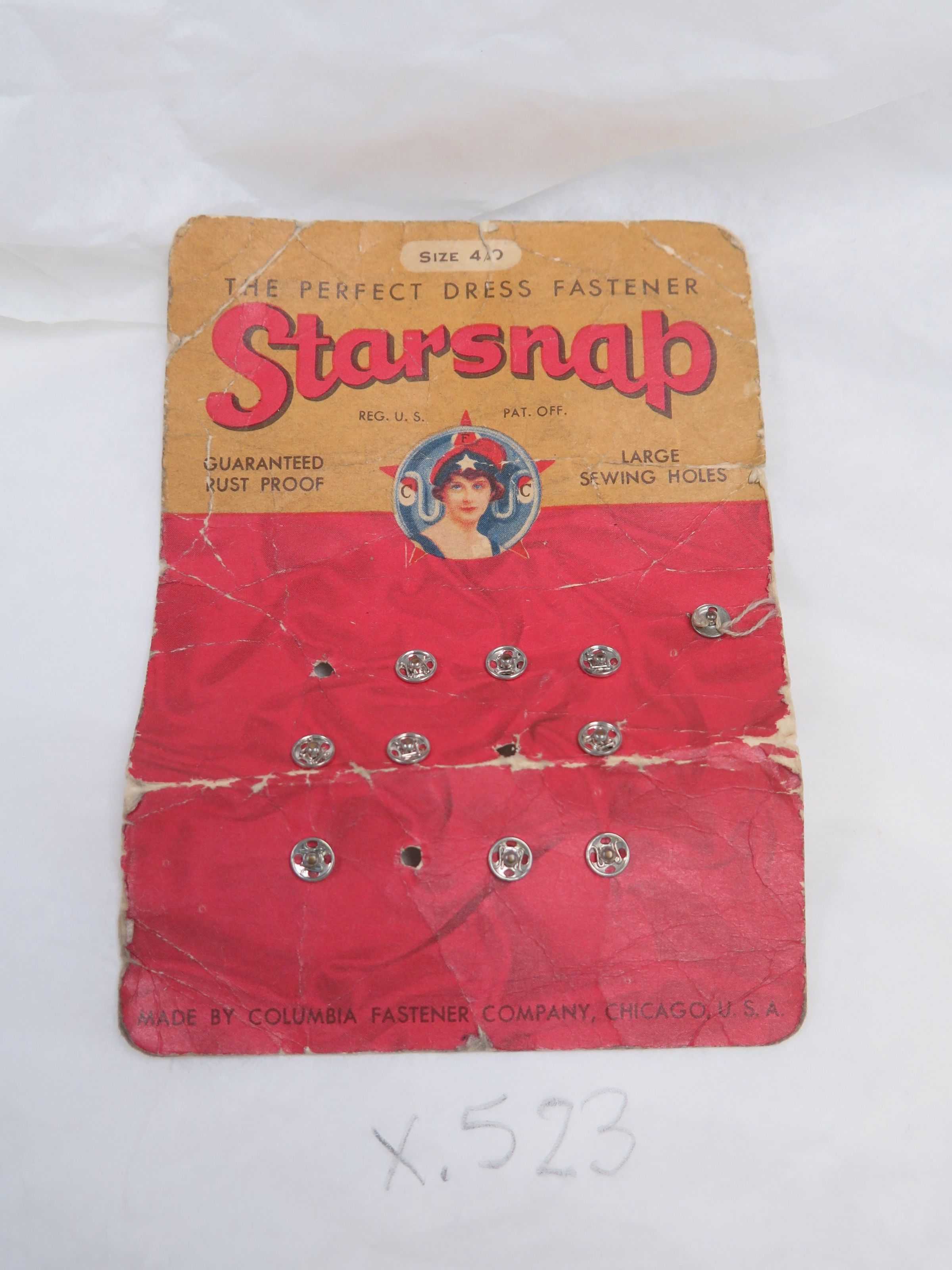 Front of card with snaps.: Origsize: 3.5" (w) x 5" (l); Origformat: Artifact