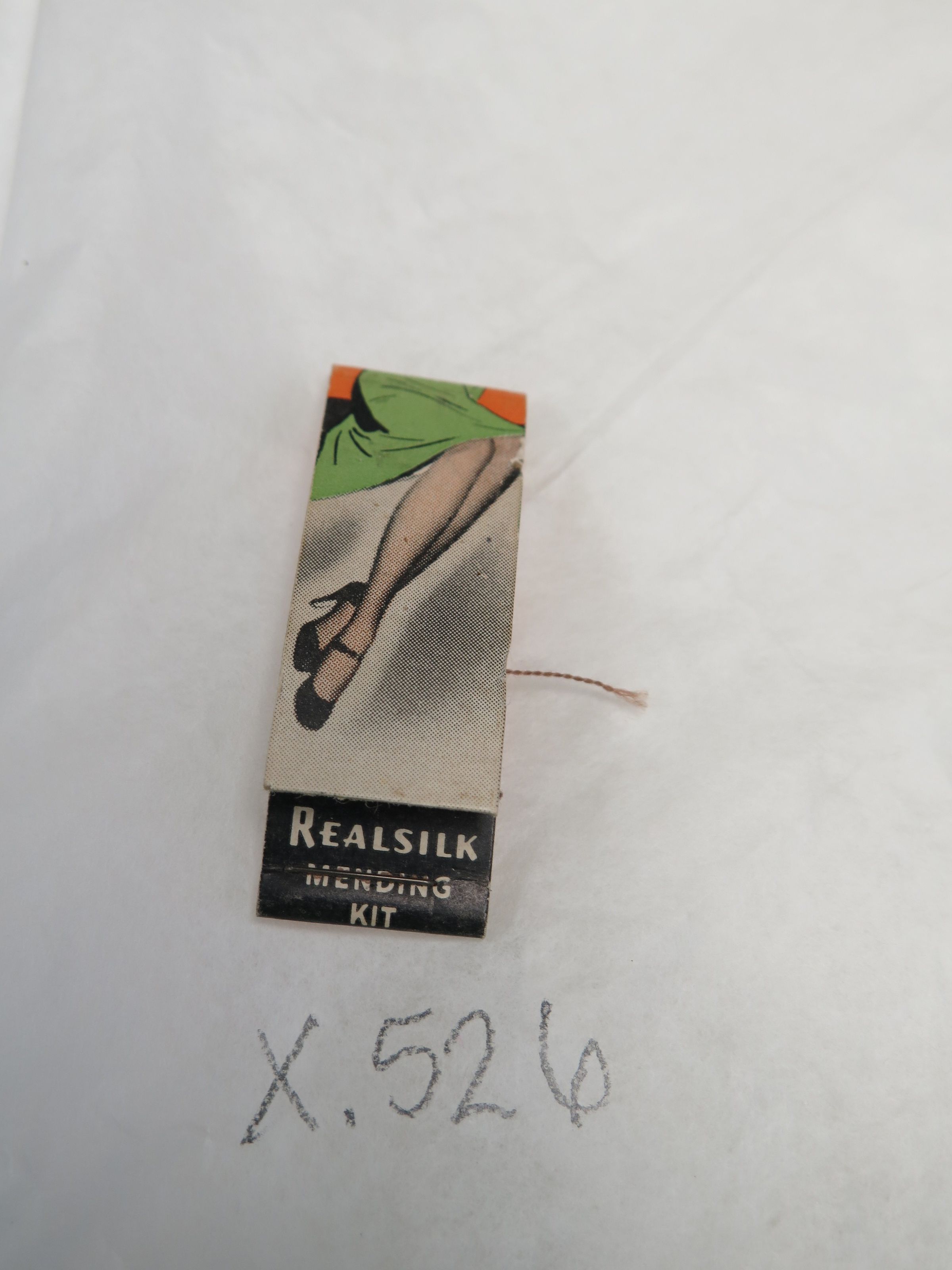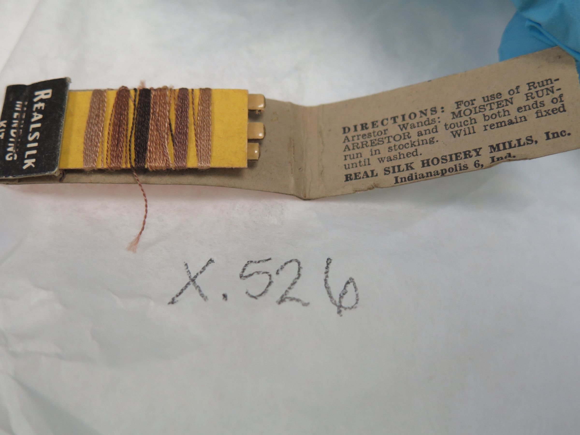 This is a cardboard Realsilk brand mending kit. The kit has 6 colors of thread inside. The kit measures 0.75" (h) x 2" (w).