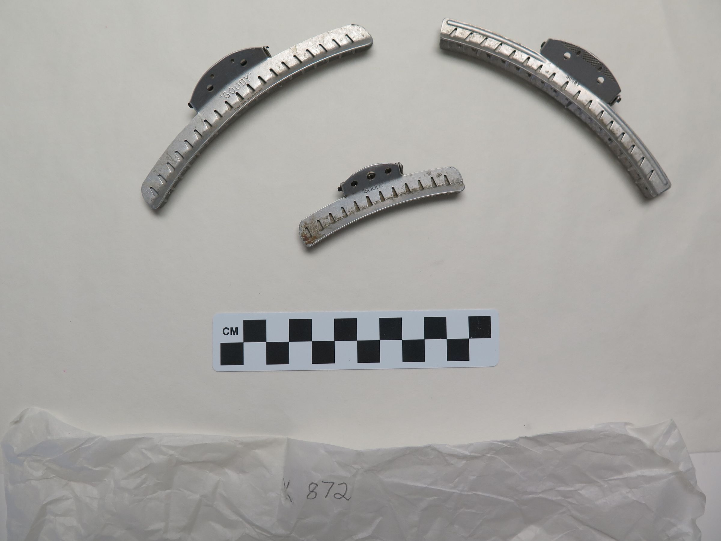 This is a set of 3 "Goody" brand metal hair clips. The clips measure 0.5" (w) x 5" (l) and 0.5" (w) x 3" (l).