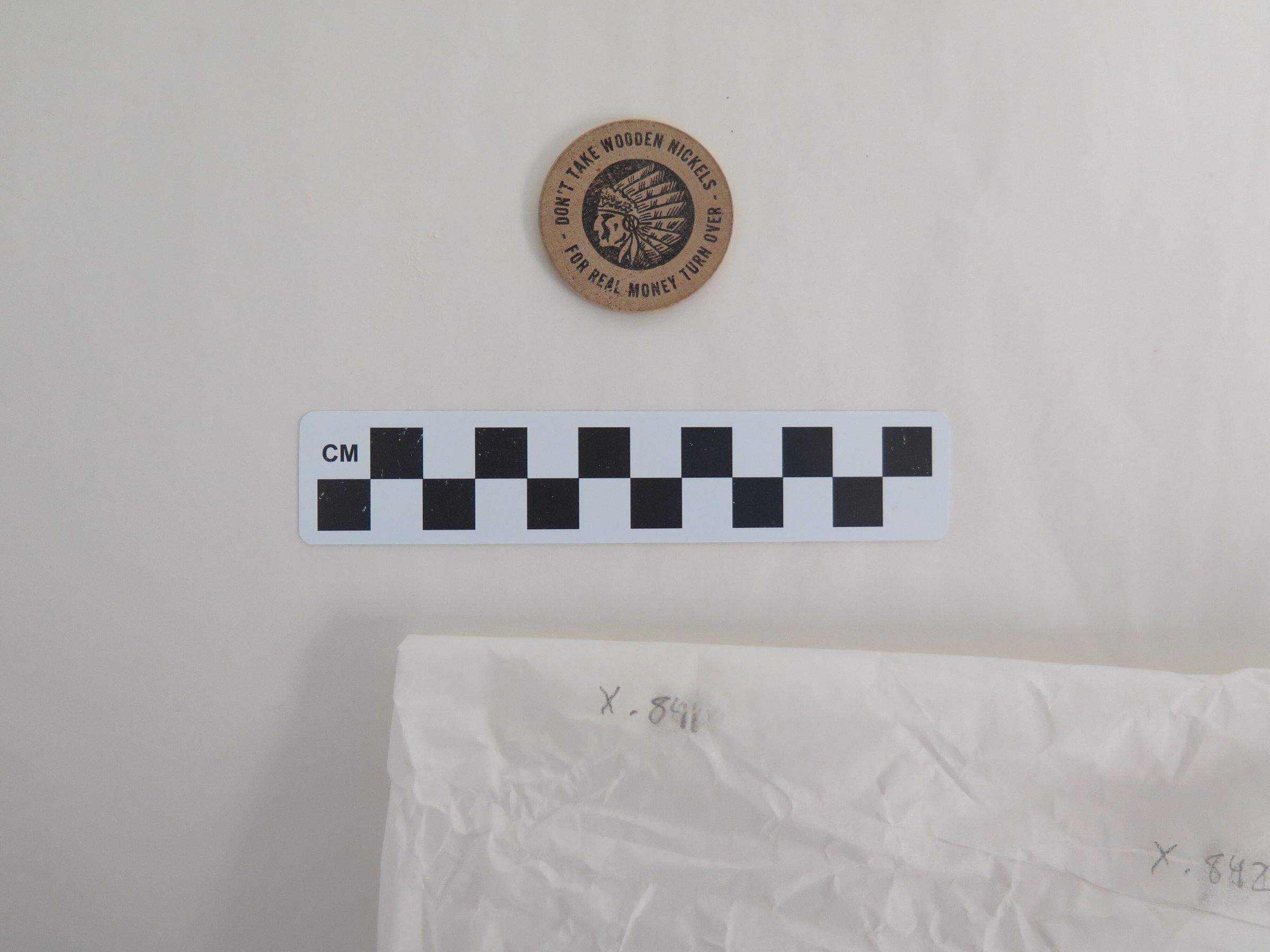 Front of wooden nickel.