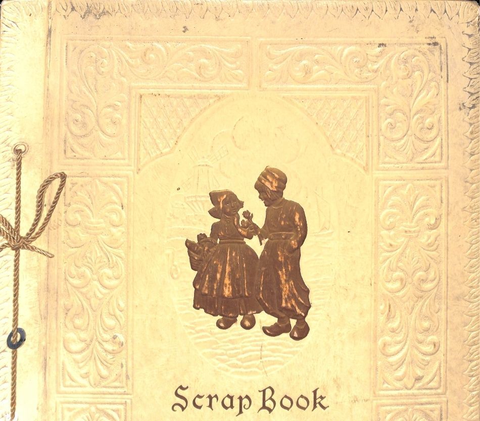 Item is a large hard bound scrapbook from the Crescent Grange 136. It follows the year 1946 and is an organization that served as a means of social gathering for early Broomfield residents. The scrapbook itself is pale yellow with a center design of 2 children painted gold. it is bound with string and provides information about the year 1946 in chronological order. Information included in the scrapbook are obituaries of fellow grangers, photographs of members, community service reports, and other articles pertaining to Broomfield and surrounding area.Collection