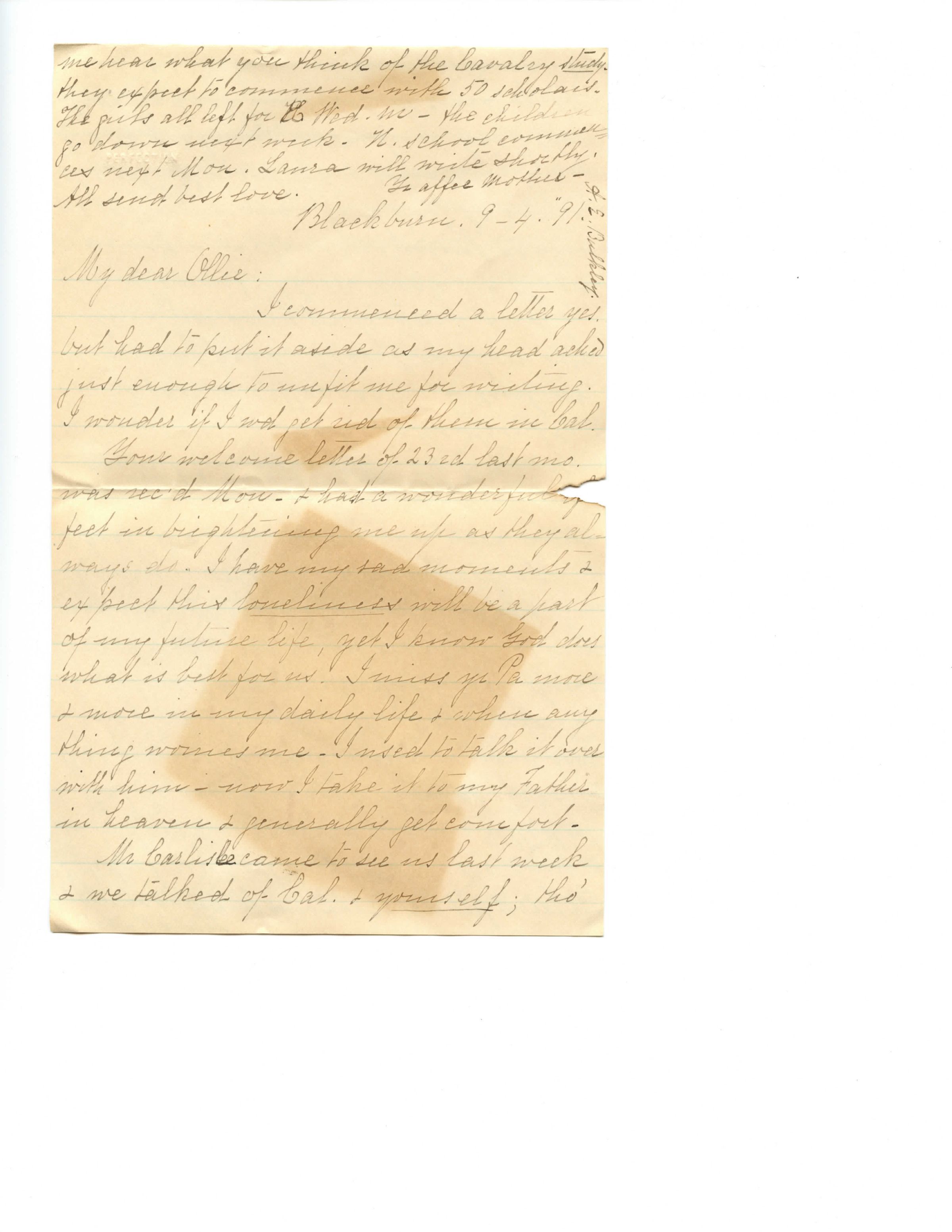 1891-09-04 Anne Bulkley to Olcott S BulkleyEntry/Object ID