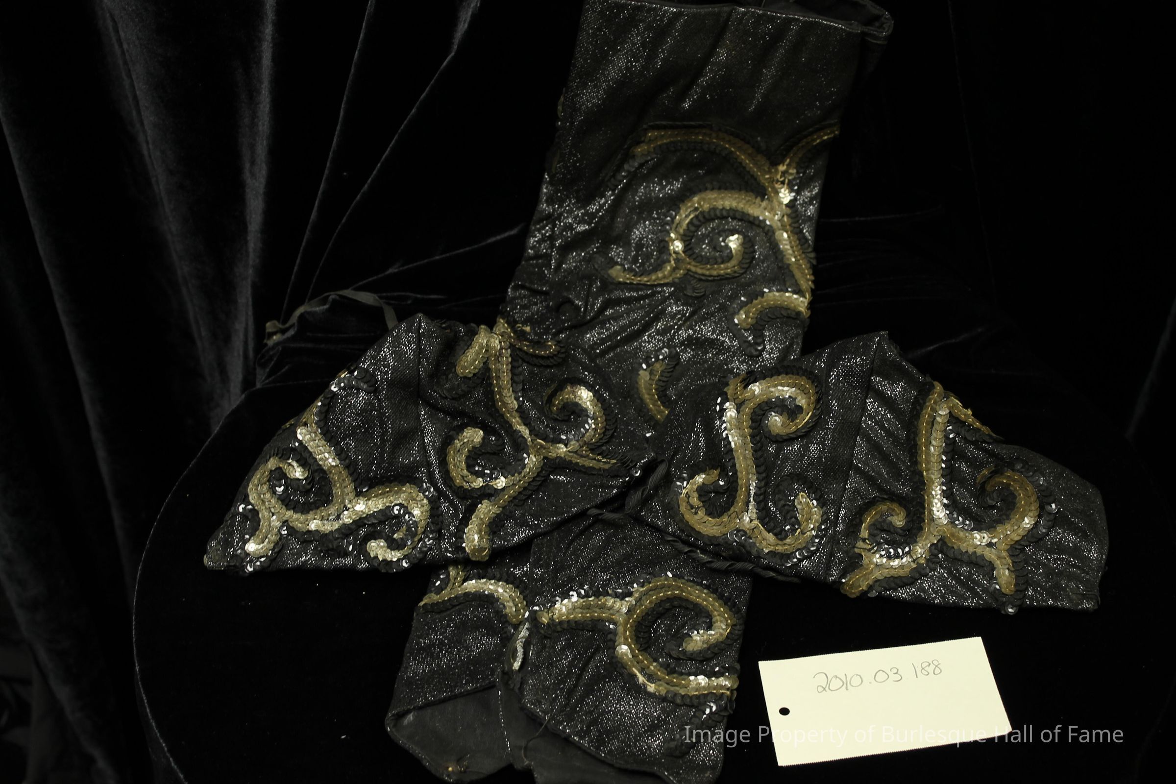Costume - gauntlet & bra set - black clack sequin with metallic fabric, Sherri Champagne? Bat Costume