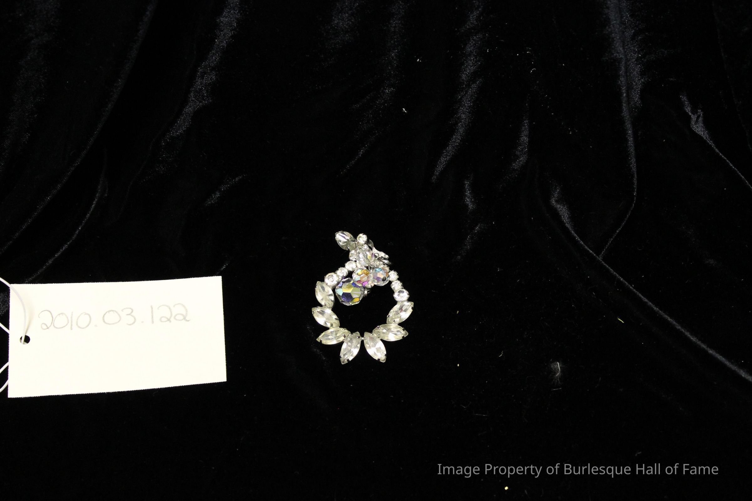 Costume - Jewelry - earrings, silver clear rhinestones, clip-on wreath shape