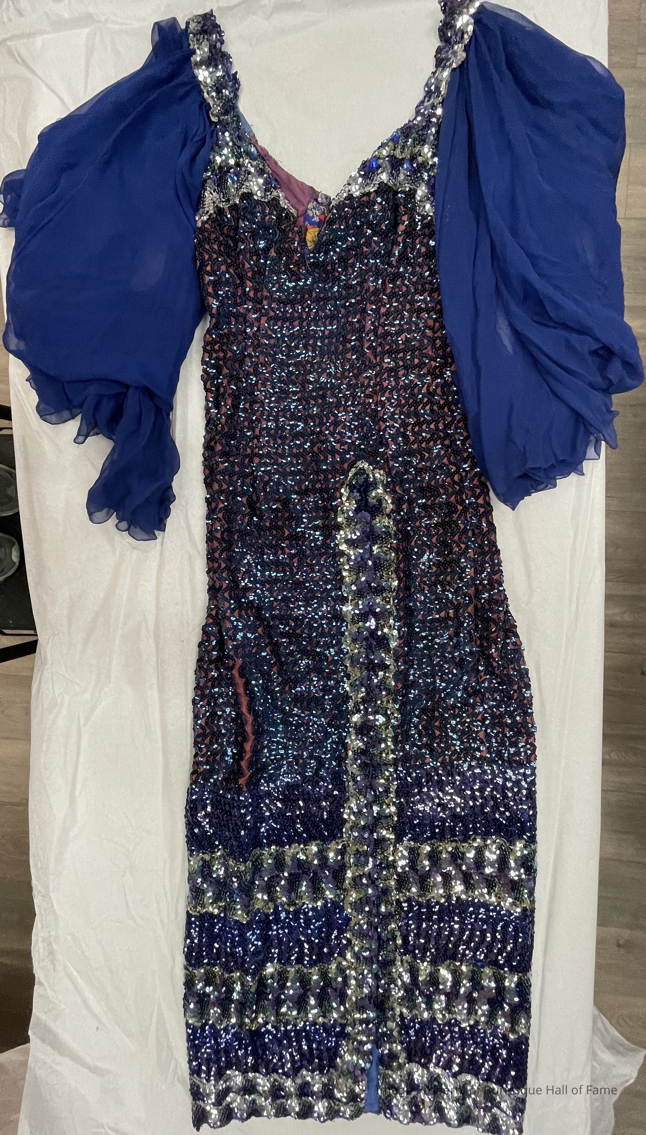 Blue sequin gown with chiffon sleeves
