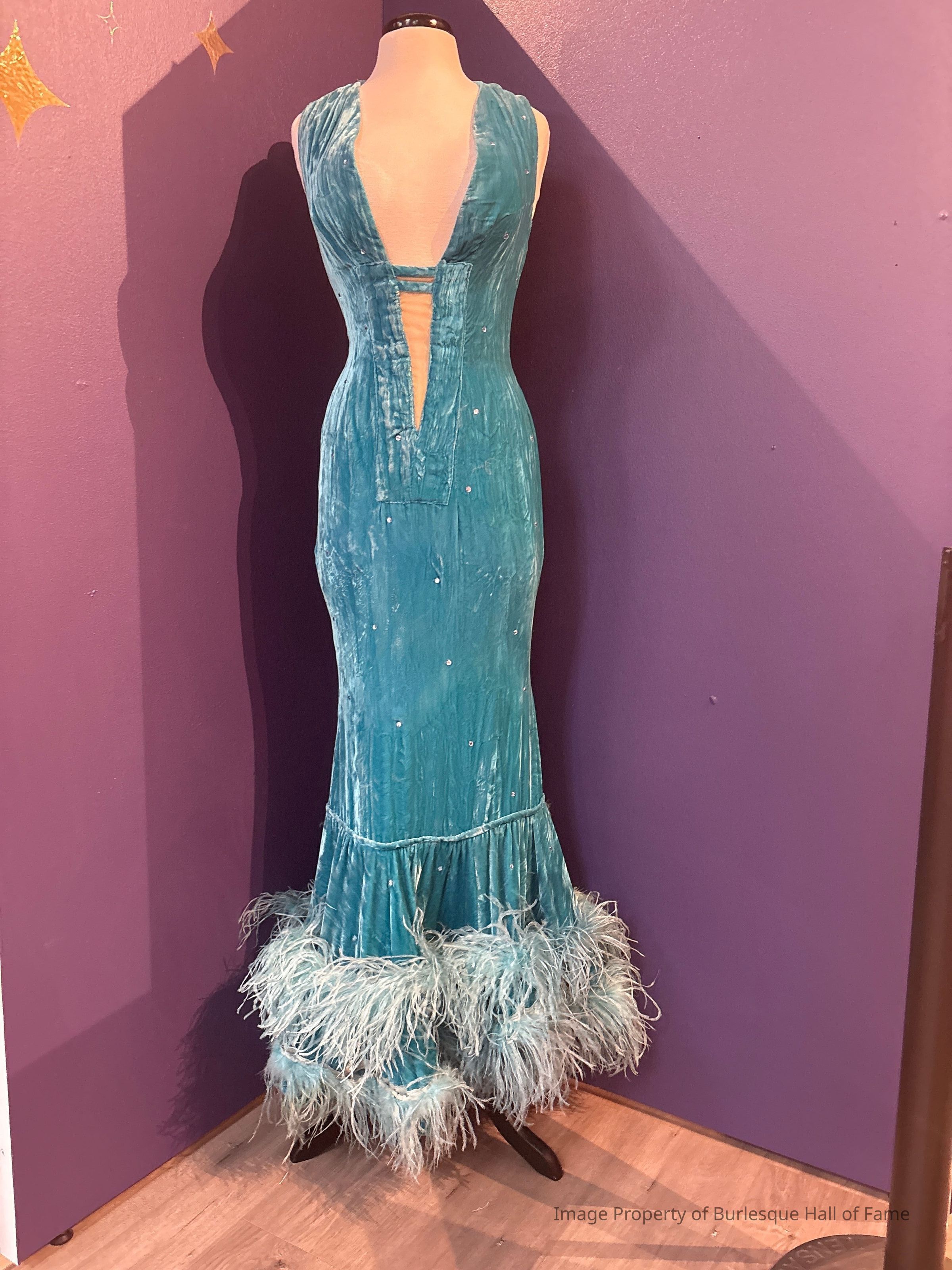 Turquoise velvet/ostrich mermaid dress