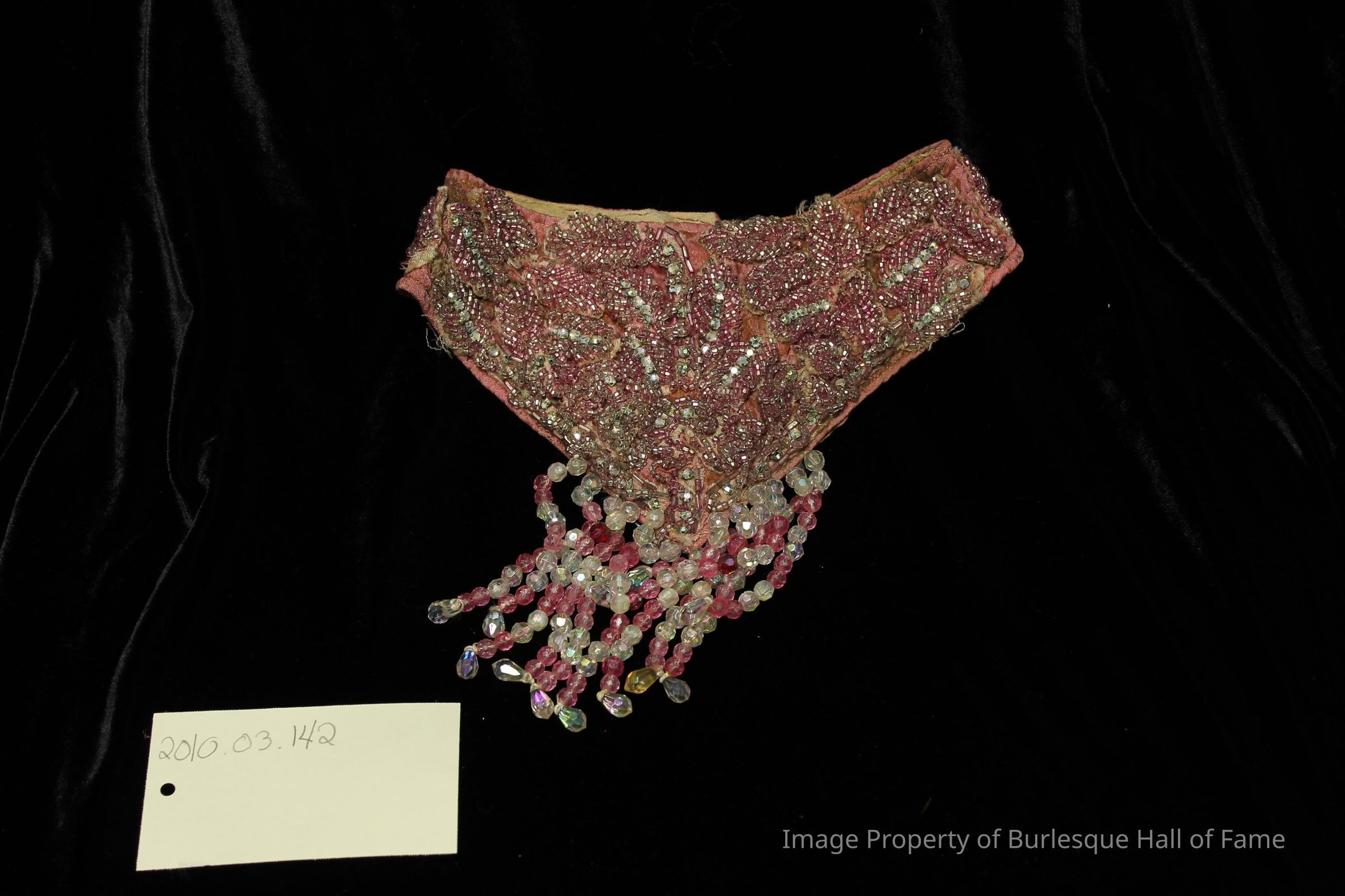 Costume - Neck Piece Pink beaded w/ rhinestones/ pink&white bead strands