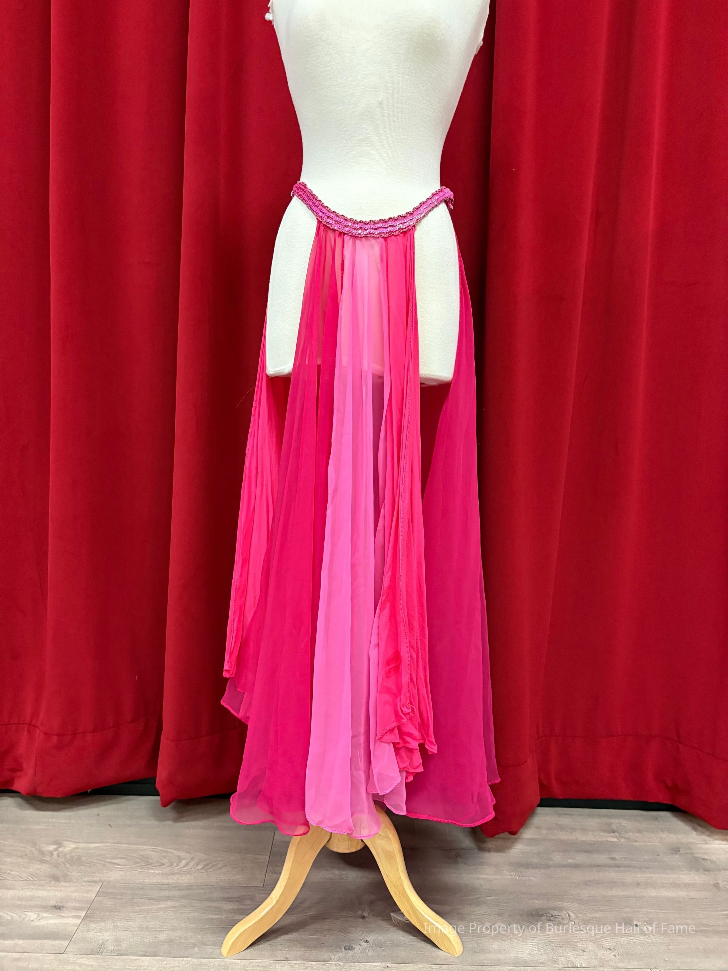 Red/pink panel skirt with sequin & bead waist
