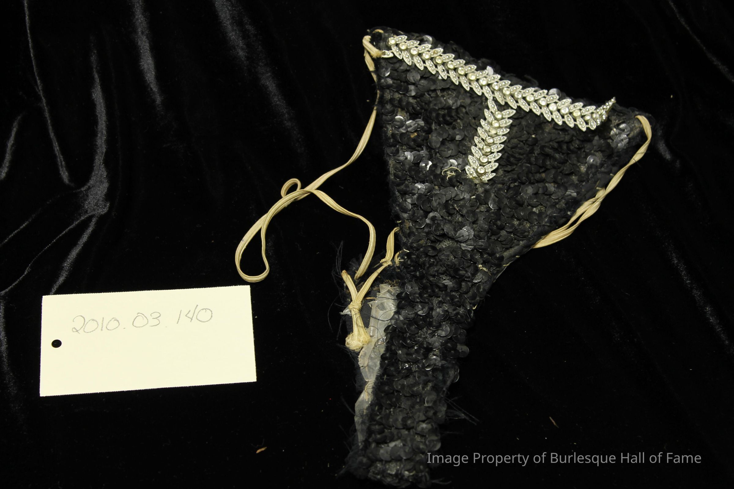 Costume - Thong- Black sequins w/ rhinestone trim & white elastic