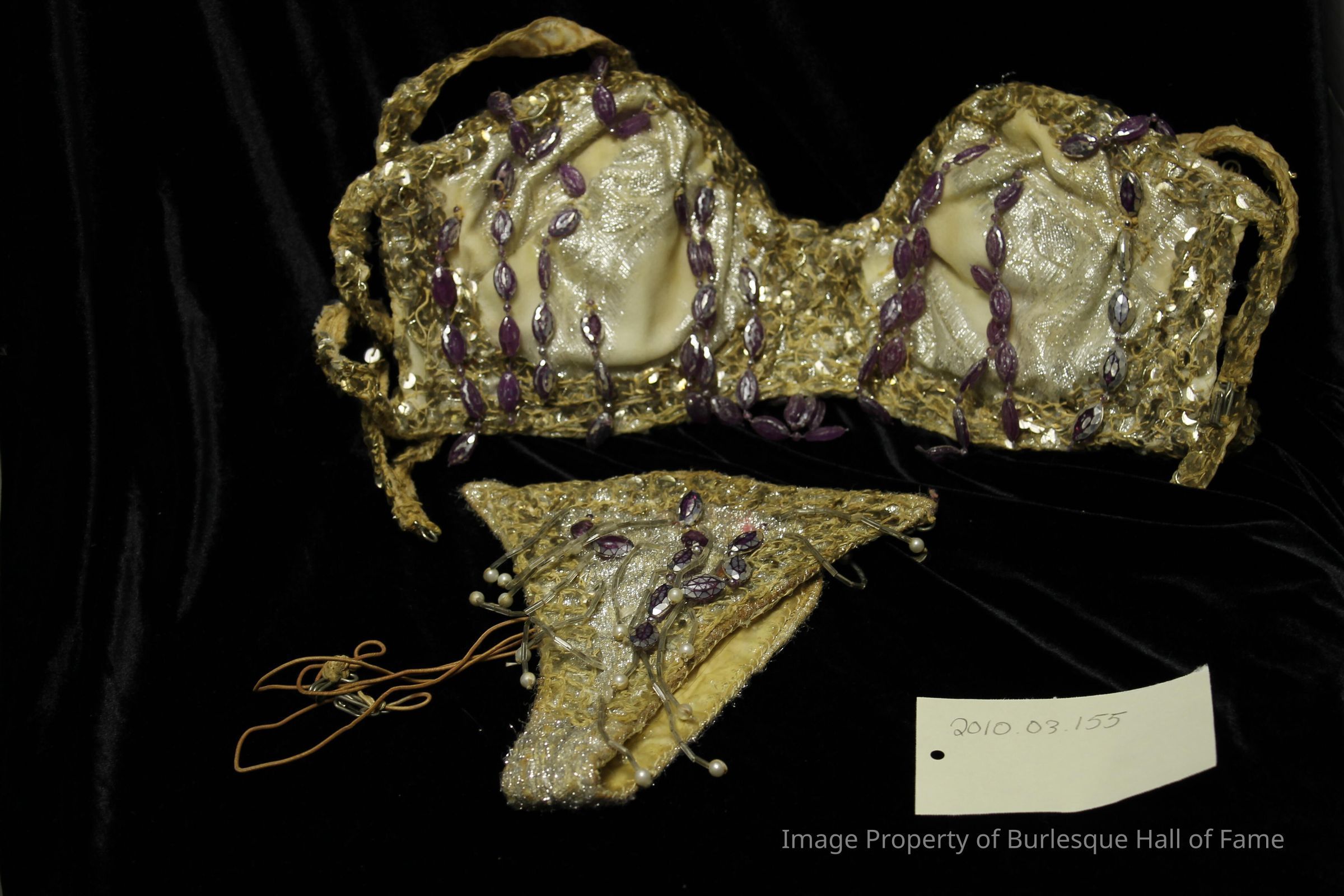 Costume - Thong & Bra Set- Silver, Silver Sequin w/ Purple Bead Strands