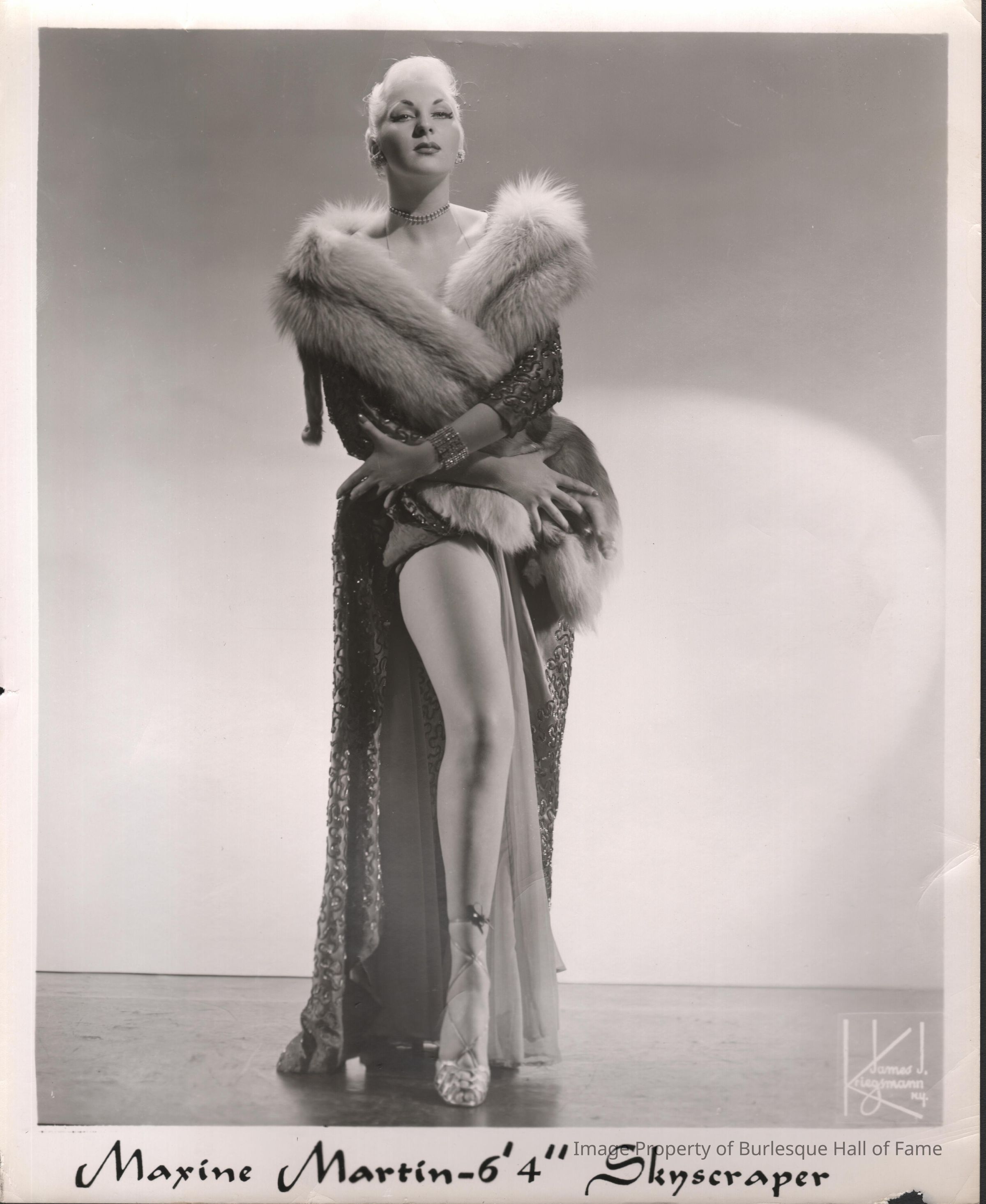 Photo - B+W- Maxine Martin " 6'4' SkyScraper", gown + fur wrap