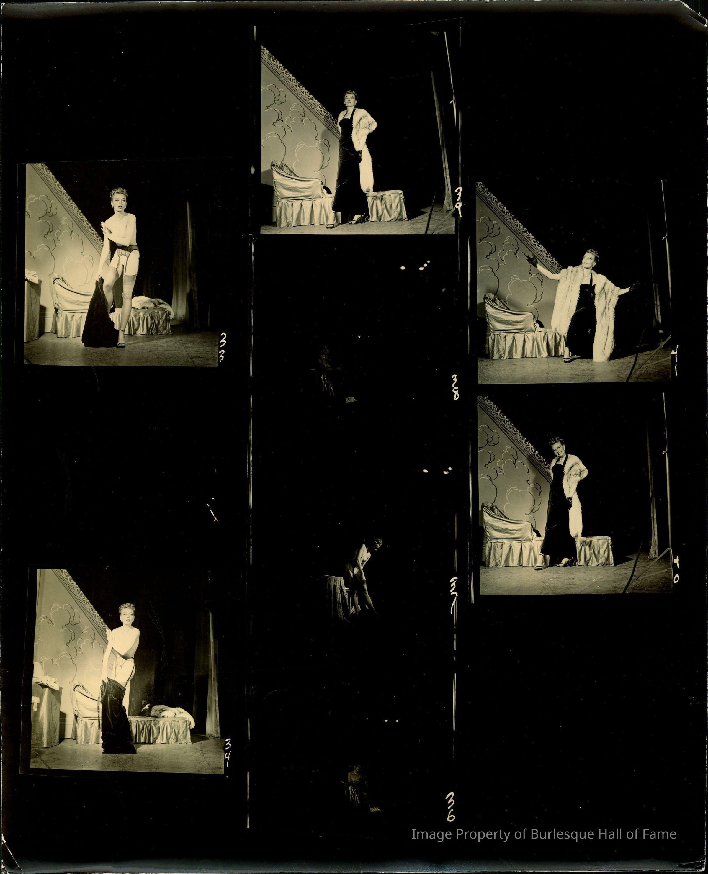 Photo - B+W- Test Sheet- Lili St Cyr Stage Series Stripping out of a Gown & Fur , Stamped on back 3945 Graphic House