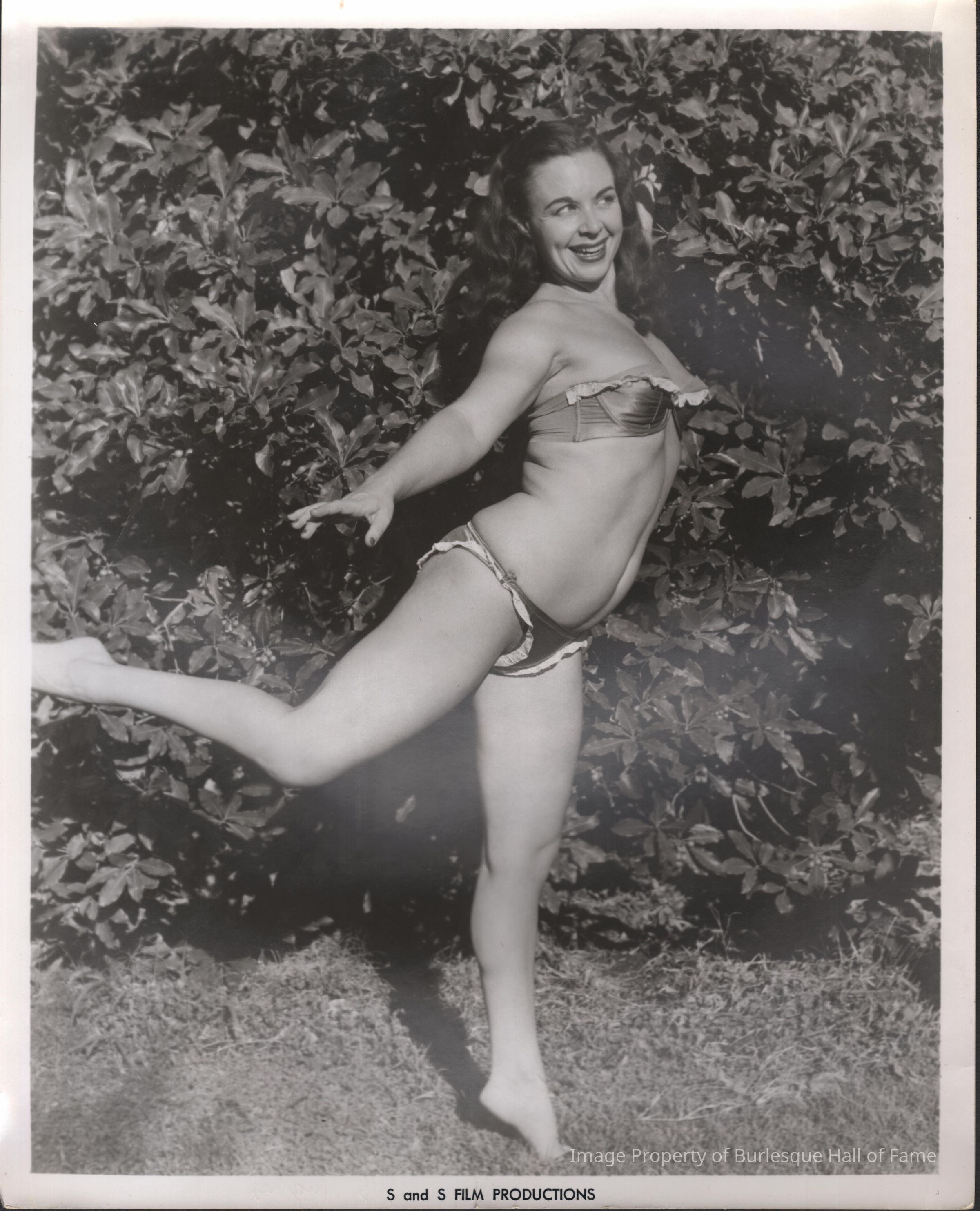Photo - BB Hughes & BB Berto written on back strapless bra & panty, outdoor active shot "S&S Film productions"
