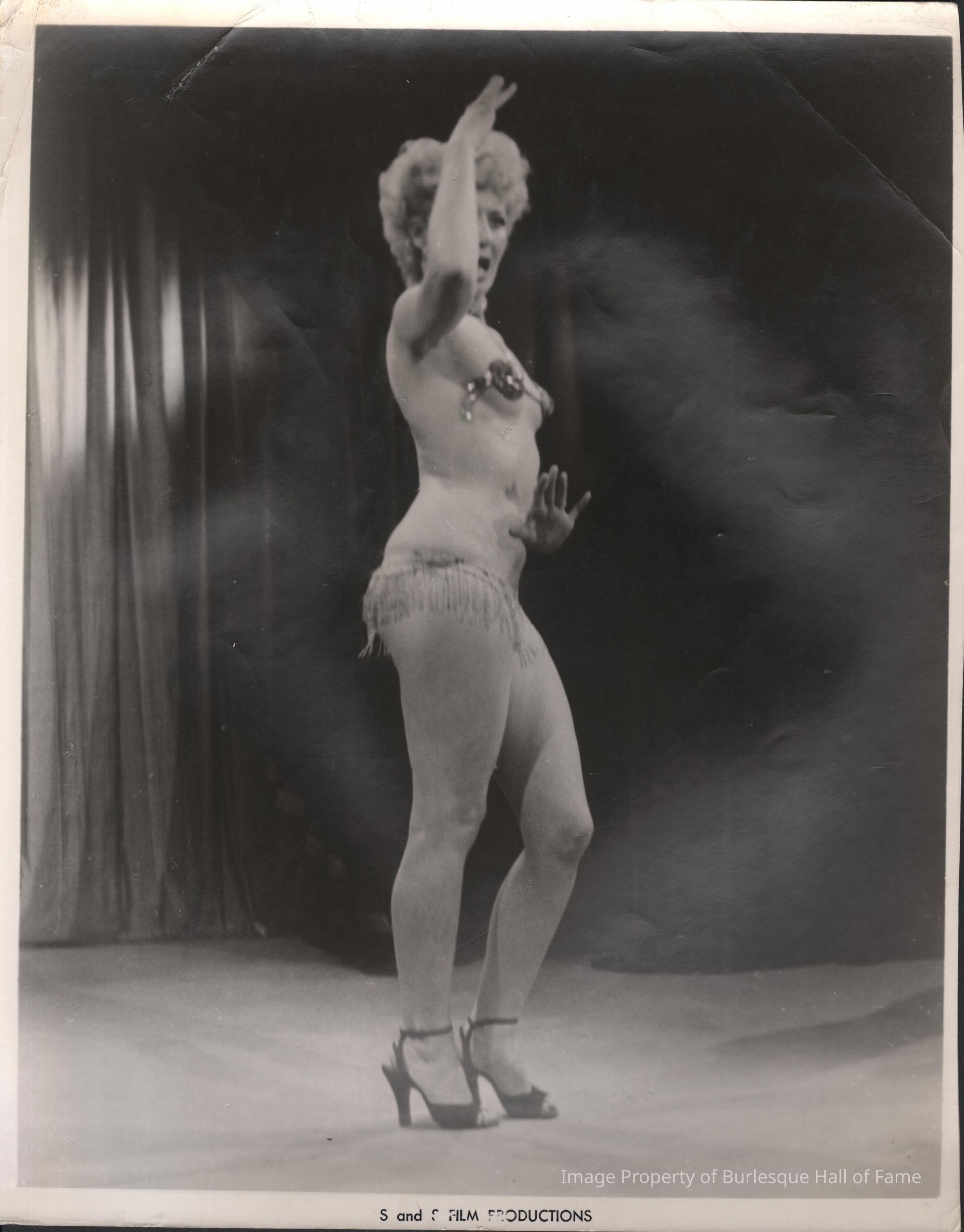 Photo - Diane DeLayne B&W action photo pasties and panty with fringe S&S Film productions